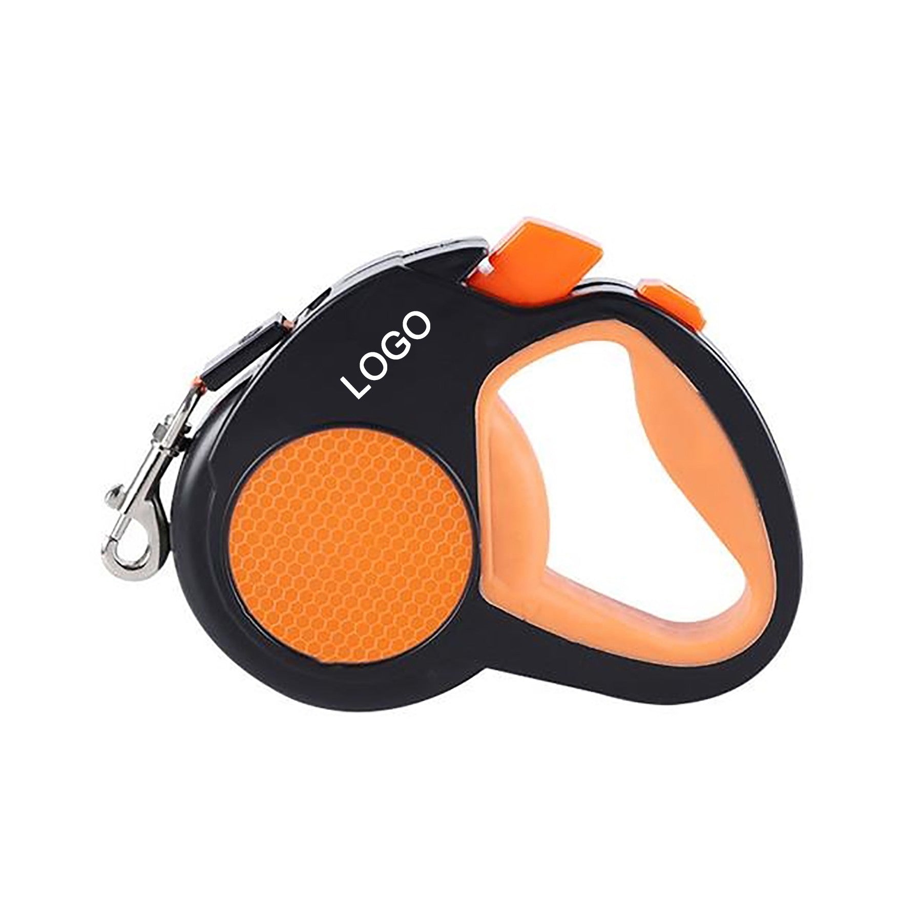 The hook is made of kirsite. The ABS shell can be printed your logo on it. The nylon rope is 118″. The nylon rope is lengthen and shorten Unrestrictedly. You can use one finger to control your pet’s range of motion, to make sure your pet is safe, avoid lost or accident. This rope features a retractable design and braking system to give your pet the feeling of liberty while letting you keep your four-legged friend nearby. Enjoy the outdoors with peace of mind with the Traction Rope for dogs. 5 1/2″ L x 3/4″ W x 4 3/4″ H