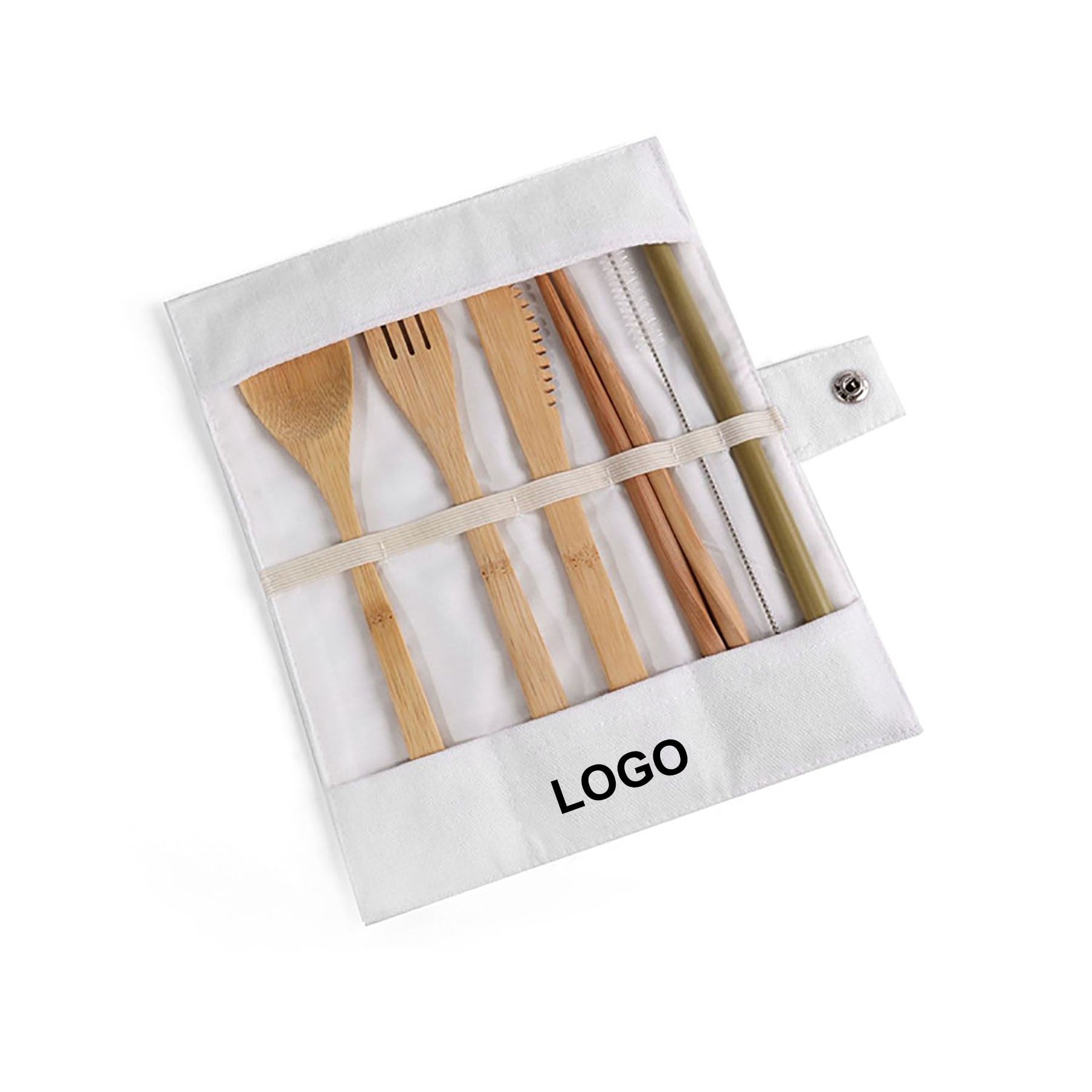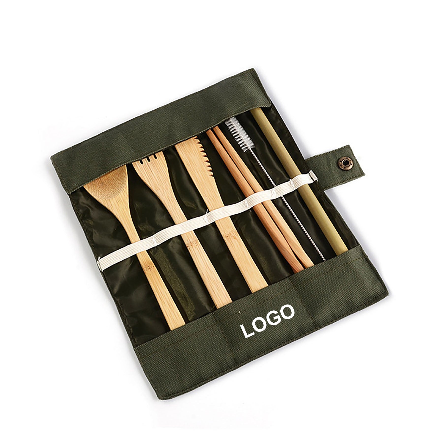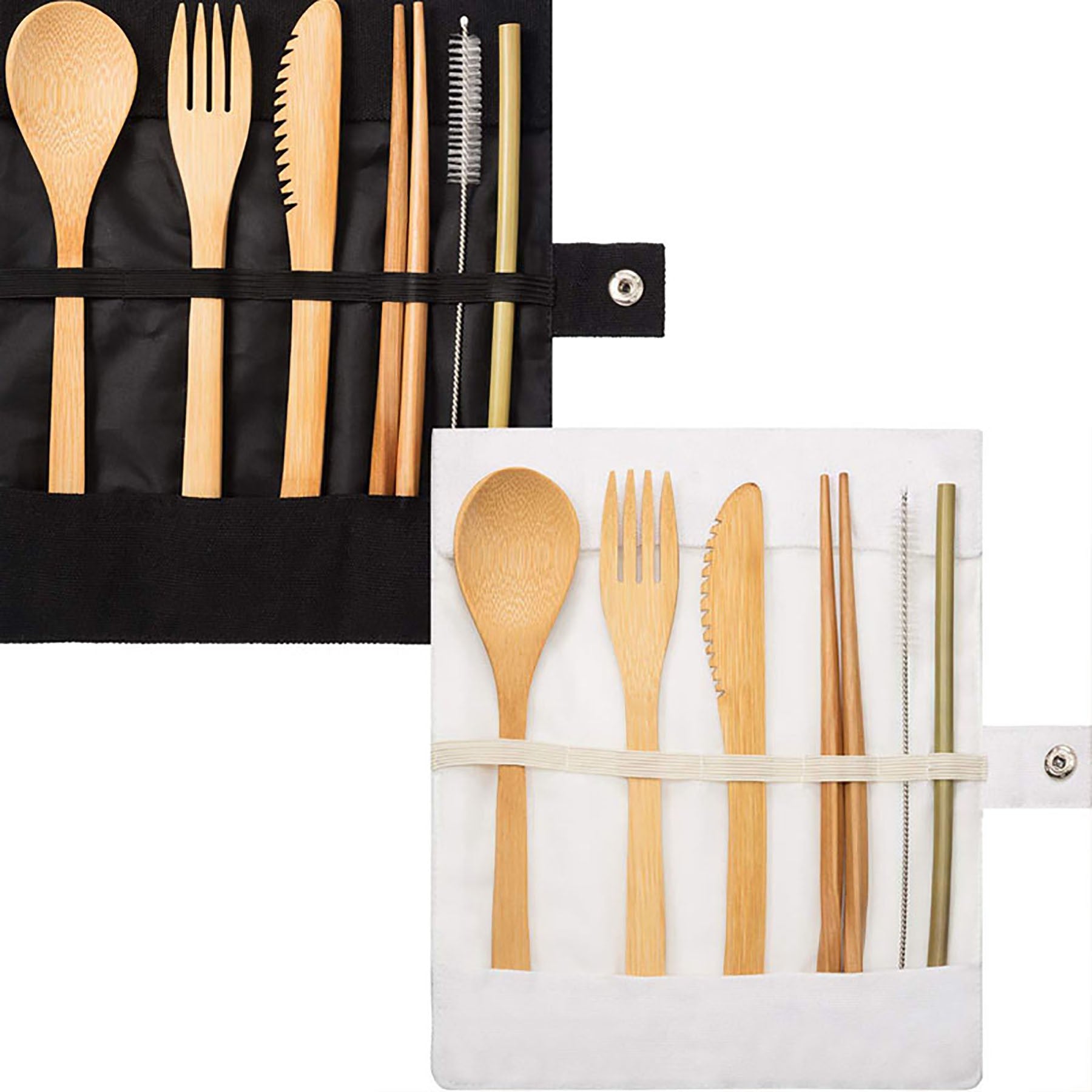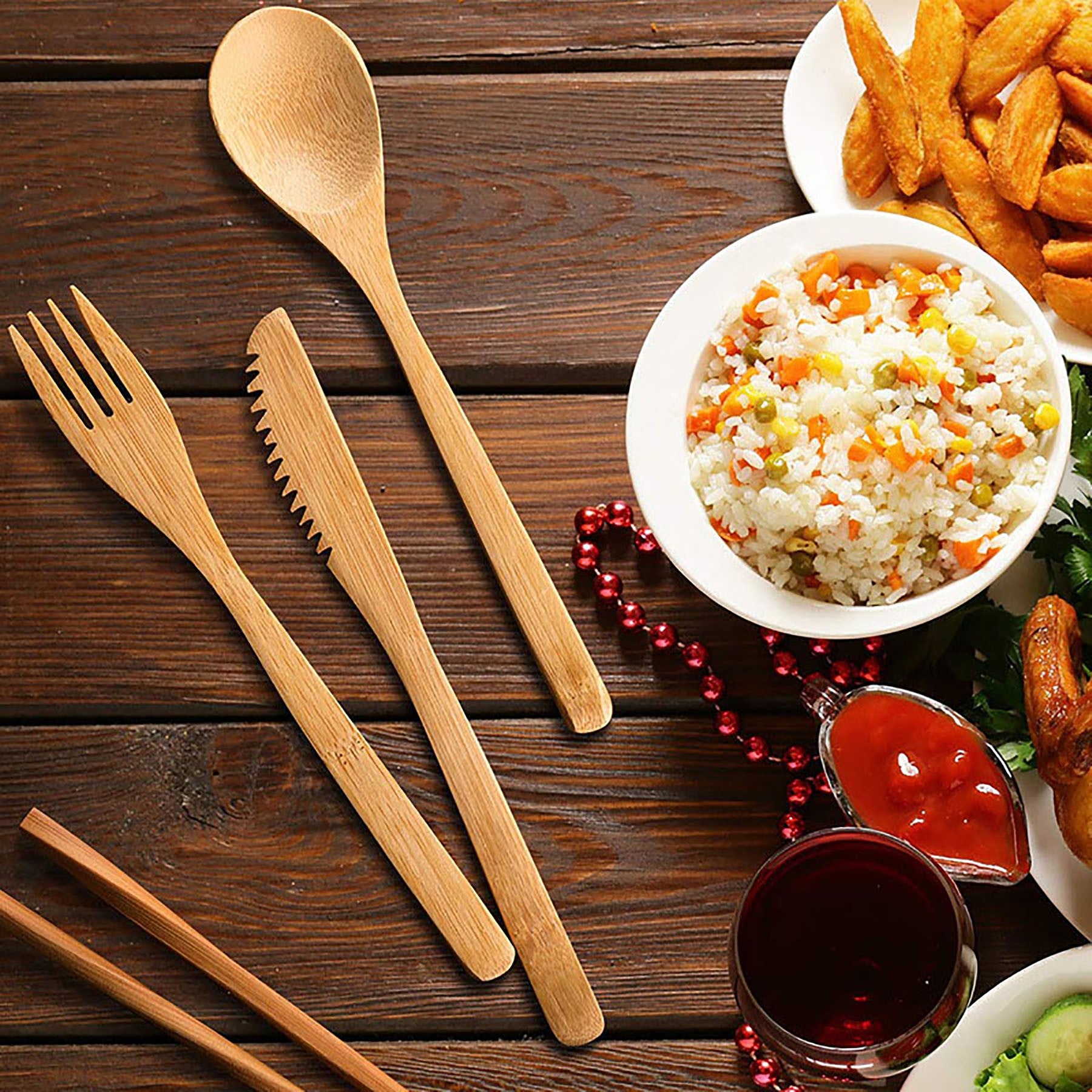 Bamboo Knife Fork Spoon Straw Chopsticks Set