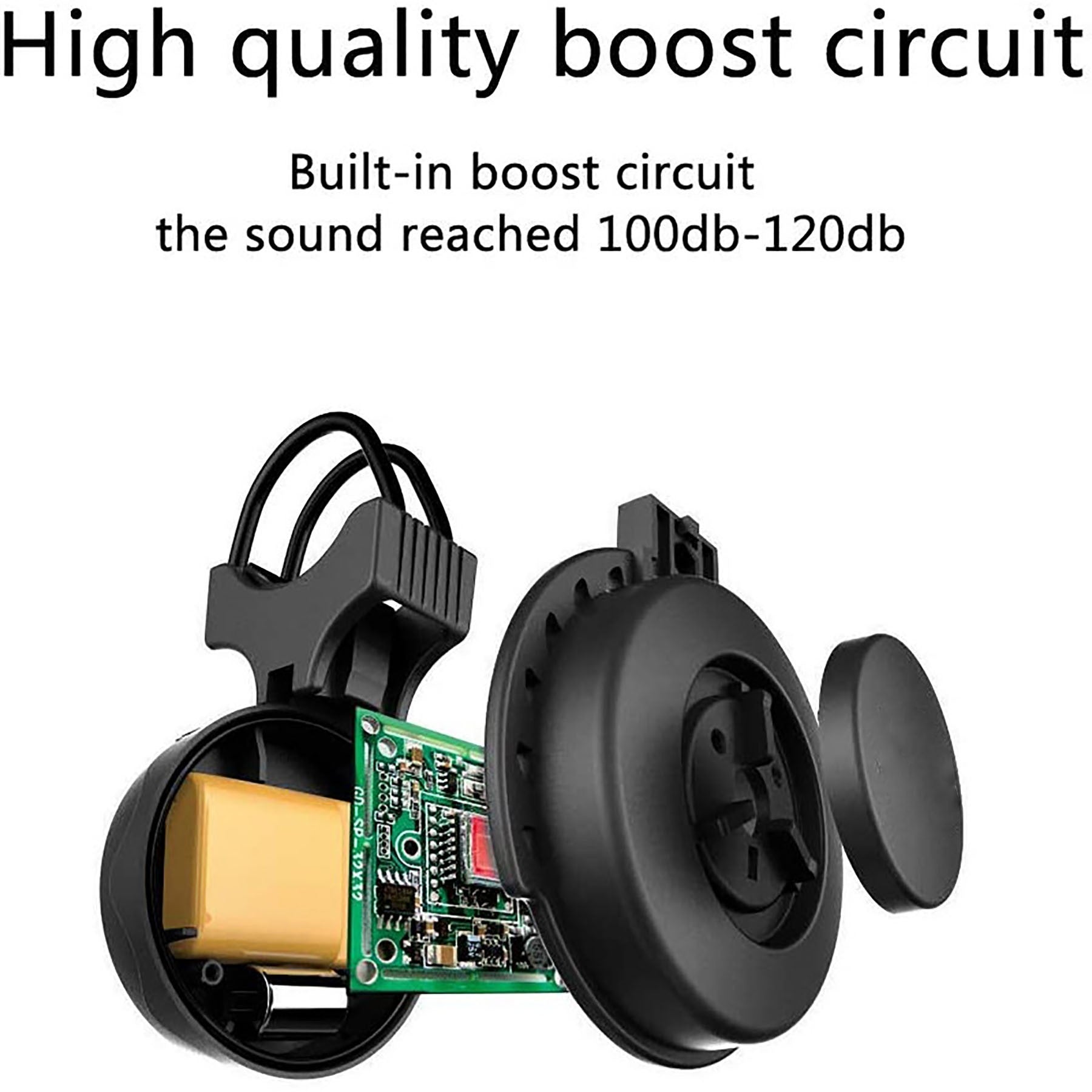 Built in boost circuit with loud sound reached 100-120 db. With rechargeable 280 mAh lithium battery,used more convenience .USB cable charge 1.2 hours full charge. Contains USB cable,1.2 hours full charge.one charge have 2000 times ring bell can work about 30 days. Have 4 sound modes,whistle sounds,horn sounds,alarm sounds,tram sounds,dust resist,IP 65 waterproof. Easy to install:put the silicone strap fixed on the handle. 1.93″ L