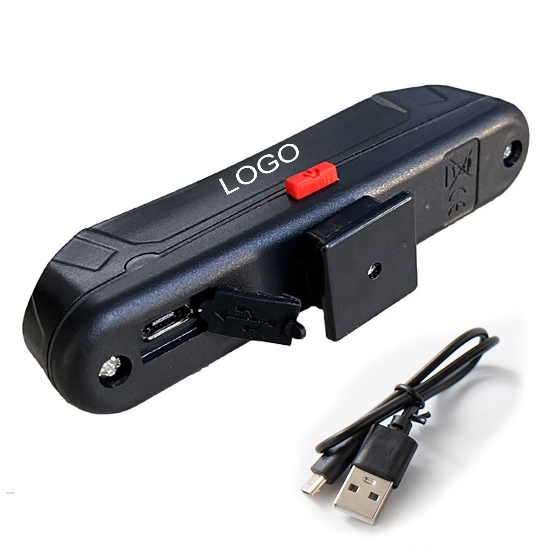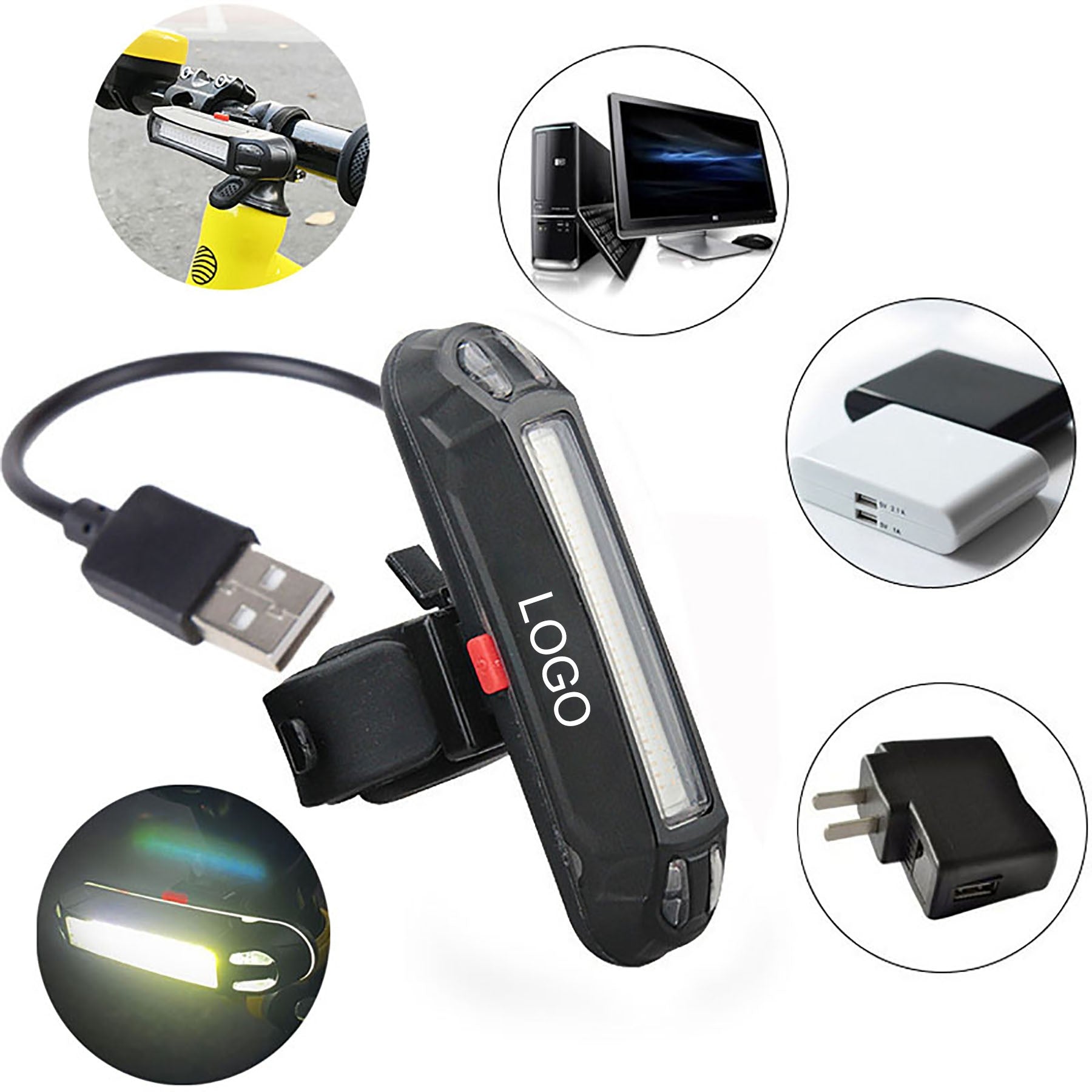 Boost brand visibility with our custom bicycle light featuring your logo. Its sleek wrap design easily attaches to any handlebar, keeping your branding visible. The powerful light can be set to constant or flashing mode to alert motorists. Stand out and make a lasting impression with this essential accessory for biking enthusiasts. 2 3/8″ L x 1 3/4″ W x 1 9/16″ H