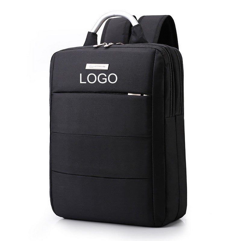 The laptop backpack is made with Waterproof Oxford Fabric. This computer backpack contains ample storage with the pocket with key fob, large zippered main compartment with padded 15′ laptop sleeve The handle help you carry it easily. It can use be travel, school, office and so on. Your logo is welcomed! 16.5′ L x 11.75′ W x 1.375′ H