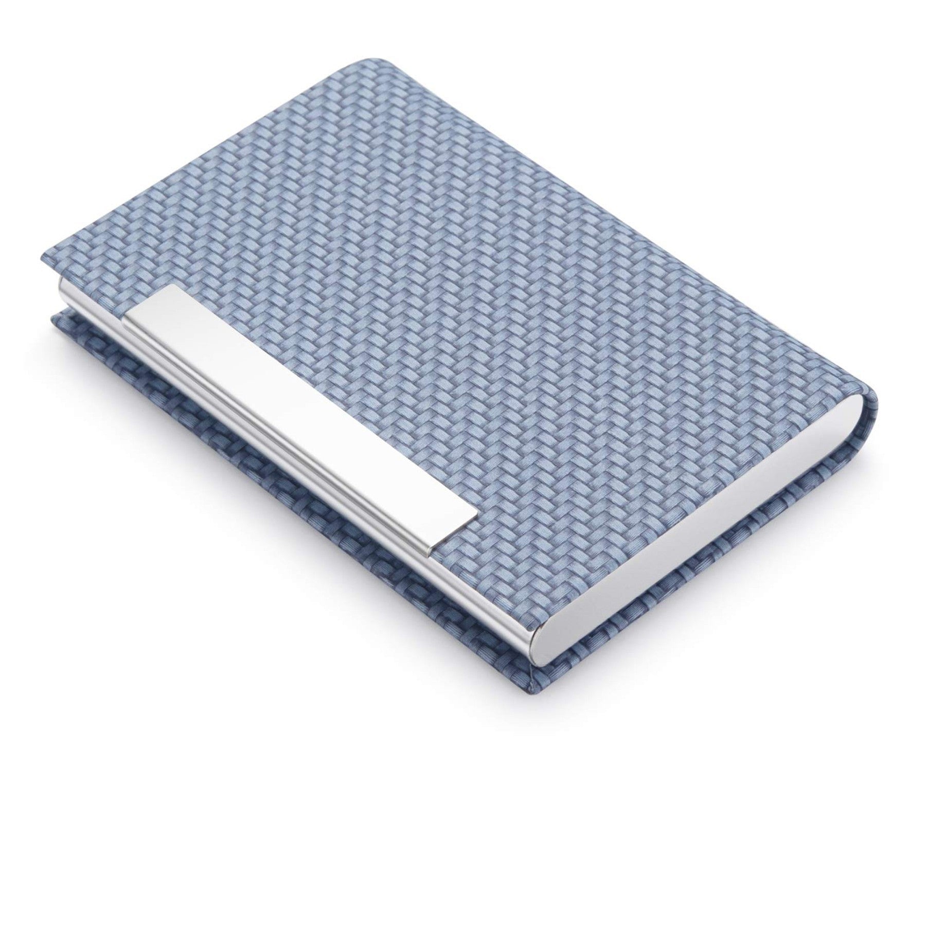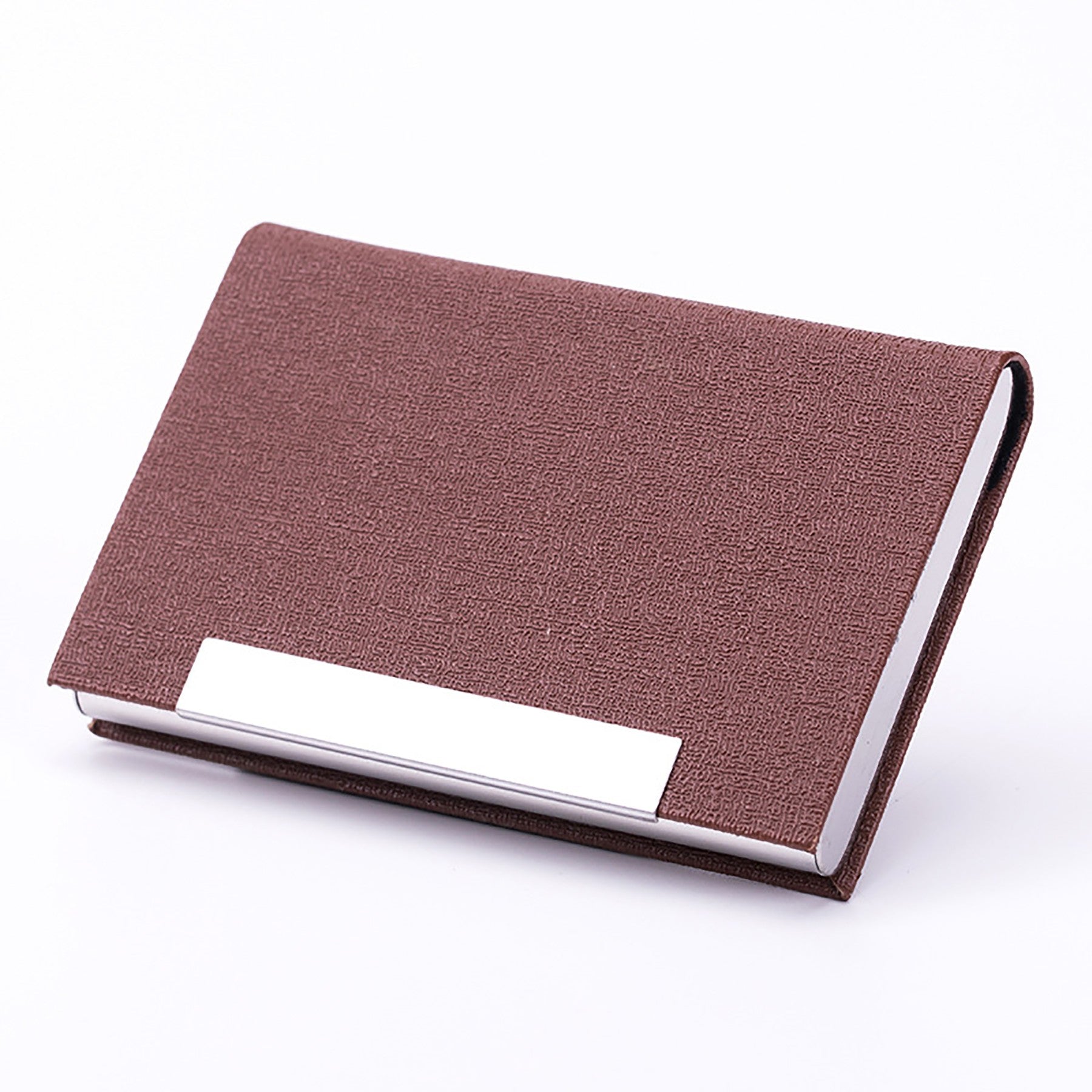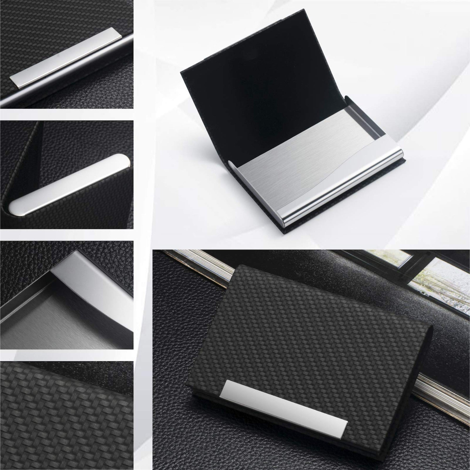 Elevate your professional image with our exquisite business card holder crafted from luxurious PU leather and sleek stainless steel. The high-quality woven textured body exudes sophistication, while the magnetic closure ensures easy access and secure storage. Its lightweight and elegant design adds a touch of refinement to your daily routine. Say goodbye to bulky pockets and confidently hand out business cards with ease. Make a lasting impression with this stylish accessory that combines functionality and style seamlessly. 3.7″ L x 2.55″ W x 0.59″ H