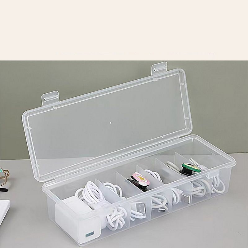 Introducing our premium cable organizer box, expertly crafted from high-quality plastic to ensure durability, waterproofing, and dustproofing for long-lasting use. The clear lid makes it easy to identify contents, perfect for daily use in both home and office settings. Keep your desk and drawers tidy with this versatile charger organizer that provides quick and convenient access to stored items. Not just for chargers and cables, this organizer can also hold smaller items like lipstick, jewelry, and more. Say goodbye to cluttered workspaces and welcome a more organized environment with our cable organizer box, saving you valuable space. 11.22′ L x 3.35′ W x 3.35′ H