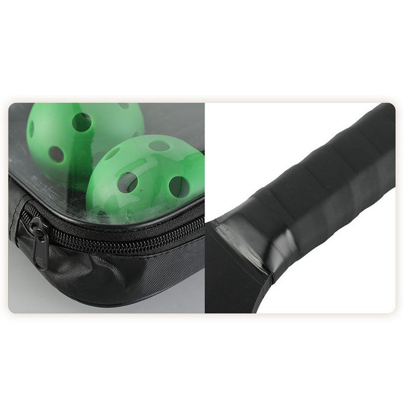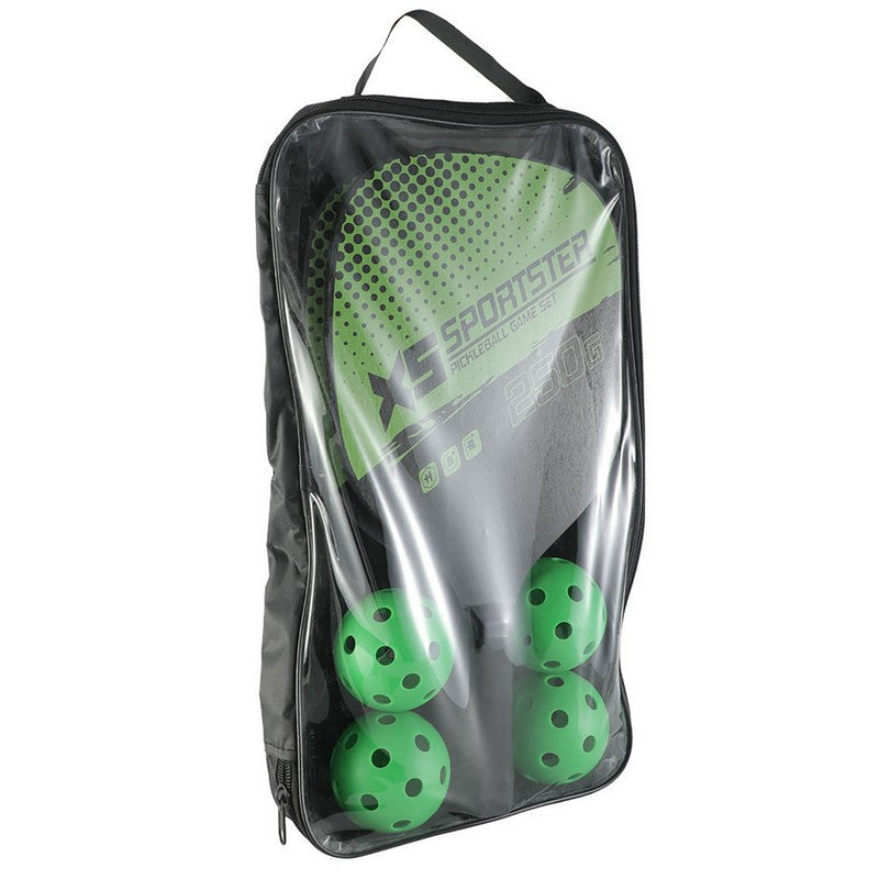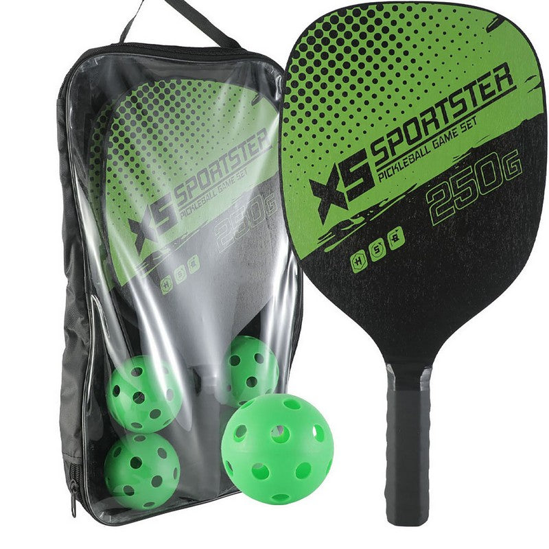 The pack pickleball paddle set has everything you need to start playing Pickleball, for doubles or singles. Carry all items in the included sports bag. Perfect for schools, recreation centers, families. Features non-slip grip, standard circumference, comfortable tactile grip. Perforated sweat-absorbent grip for easier gameplay. Vibrant colors for personalized play. 15.75′ L x 7.87′ W x 7.87′ H