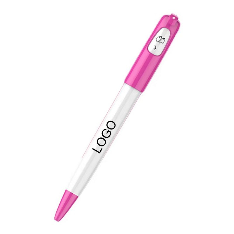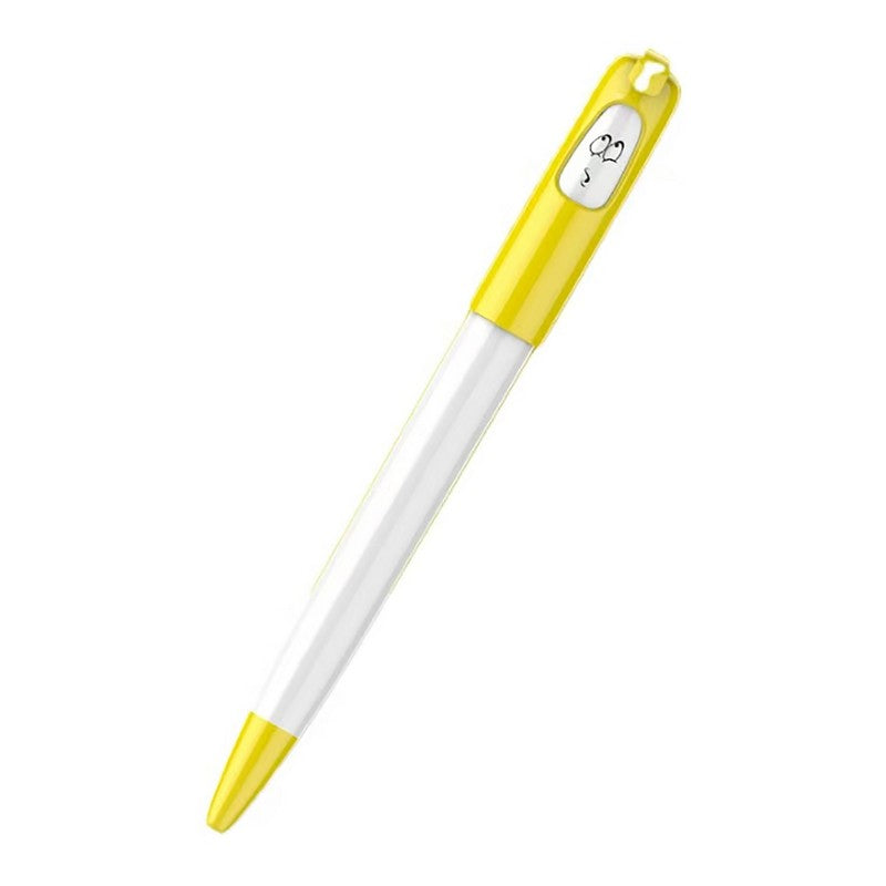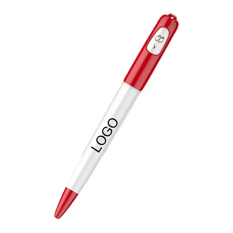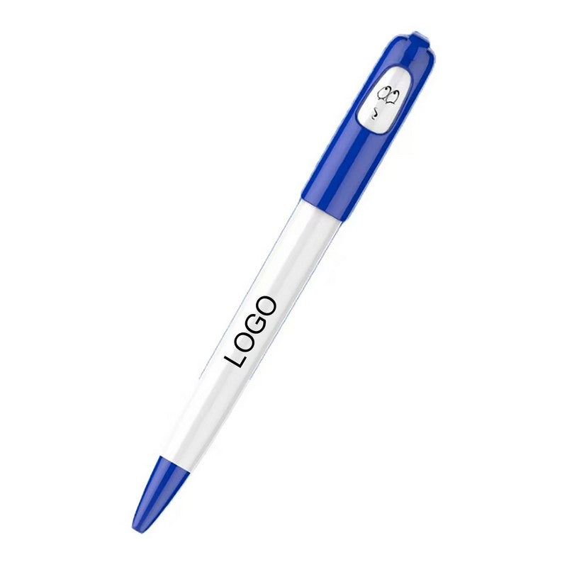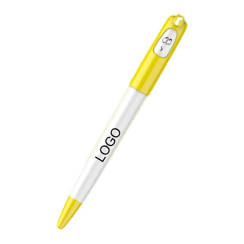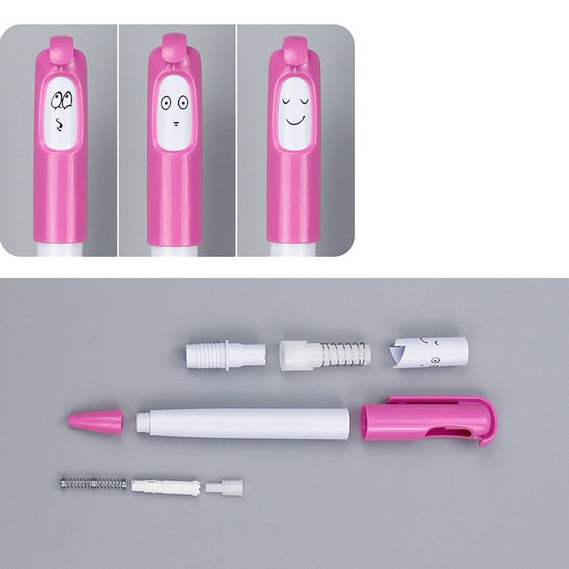 Explore the innovative ballpoint pen that offers three unique expressions with a click. Customize your writing by swapping out default designs with personalized graphics. 5.8′ L x 0.4′ W