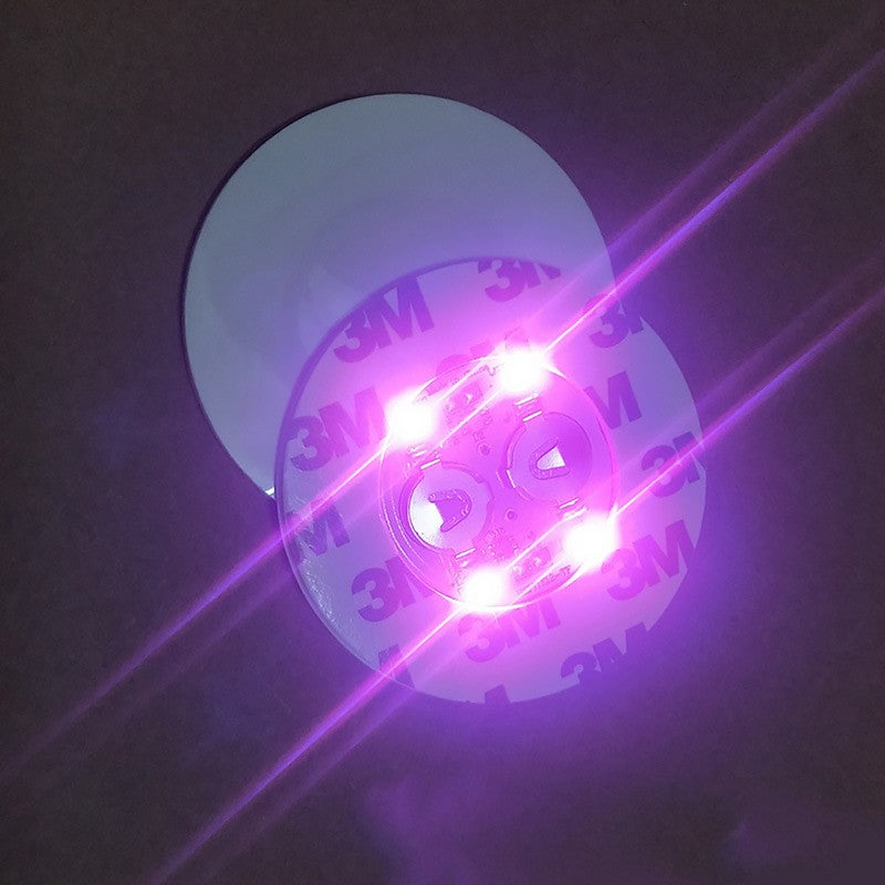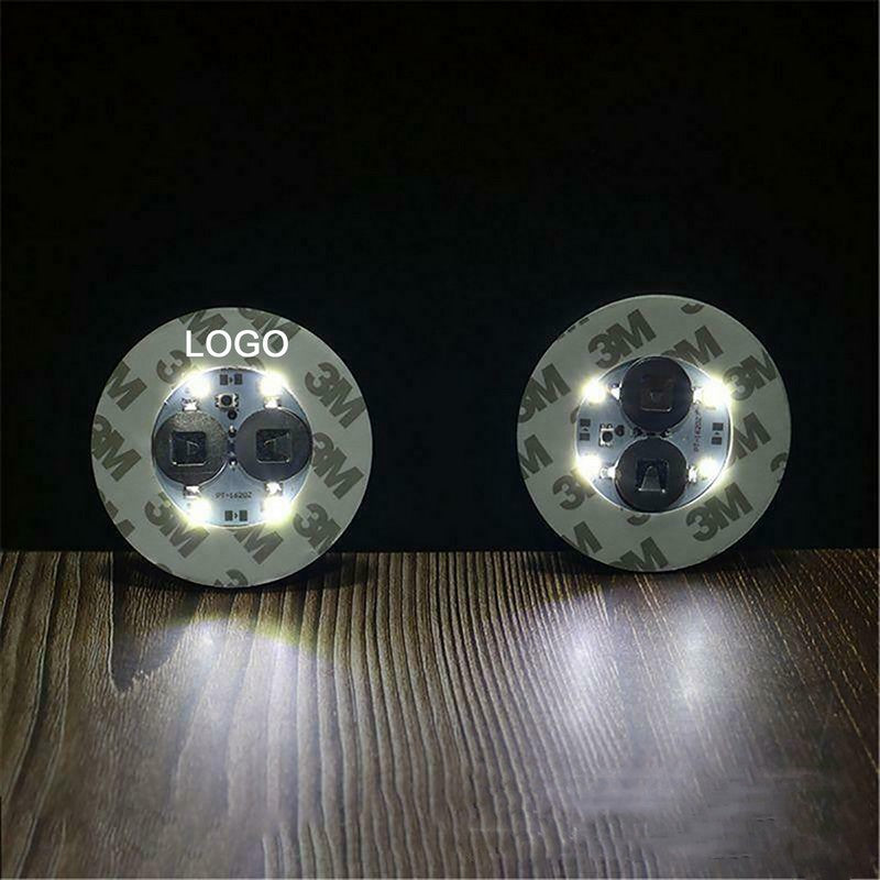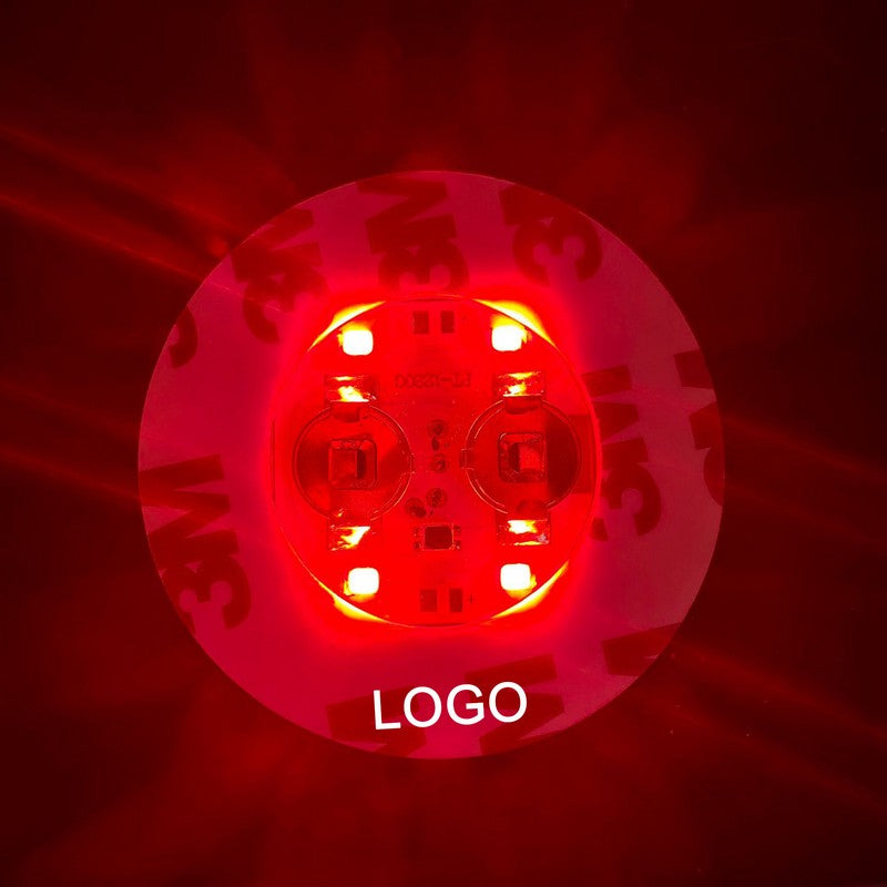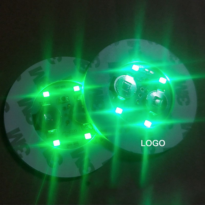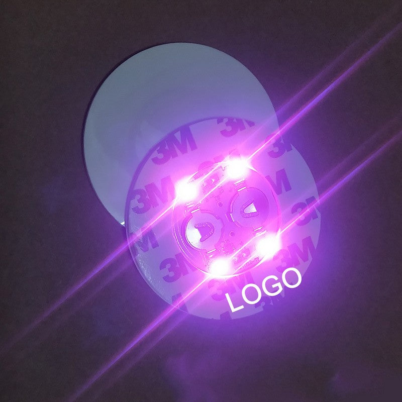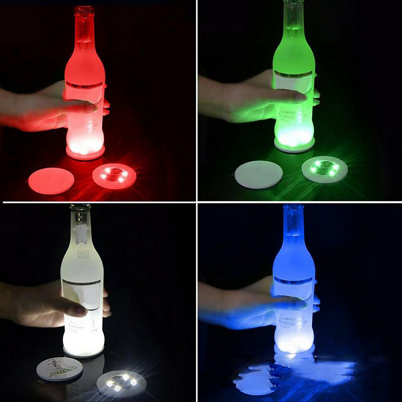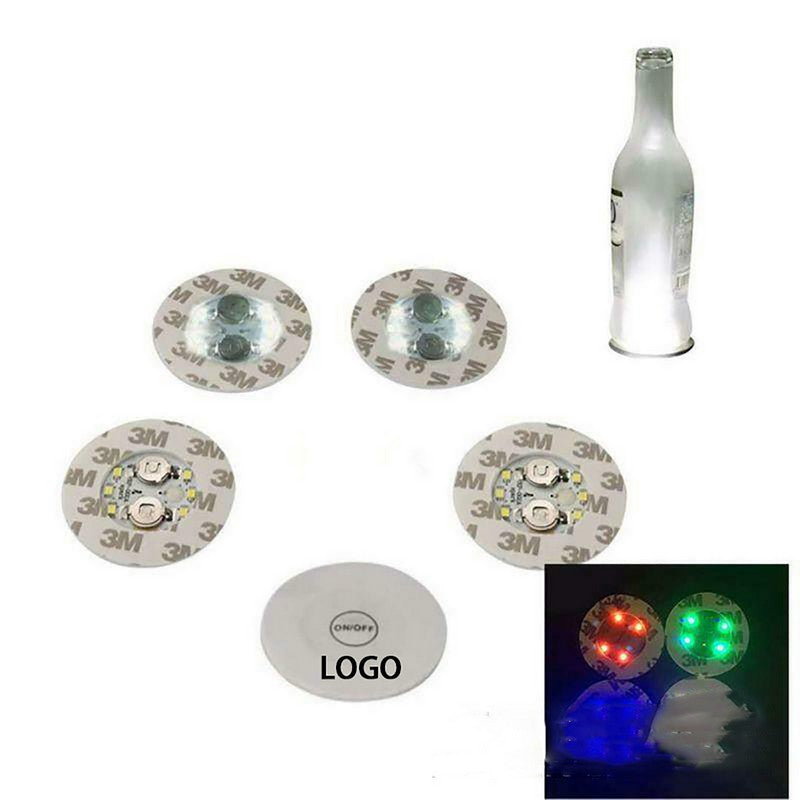 This LED cup coaster is made of LED and EVA and powered by 2pcs button batteries. Just stick it to any normal bottle or drinking glass,and click the button to turn on. 2.1875′ L