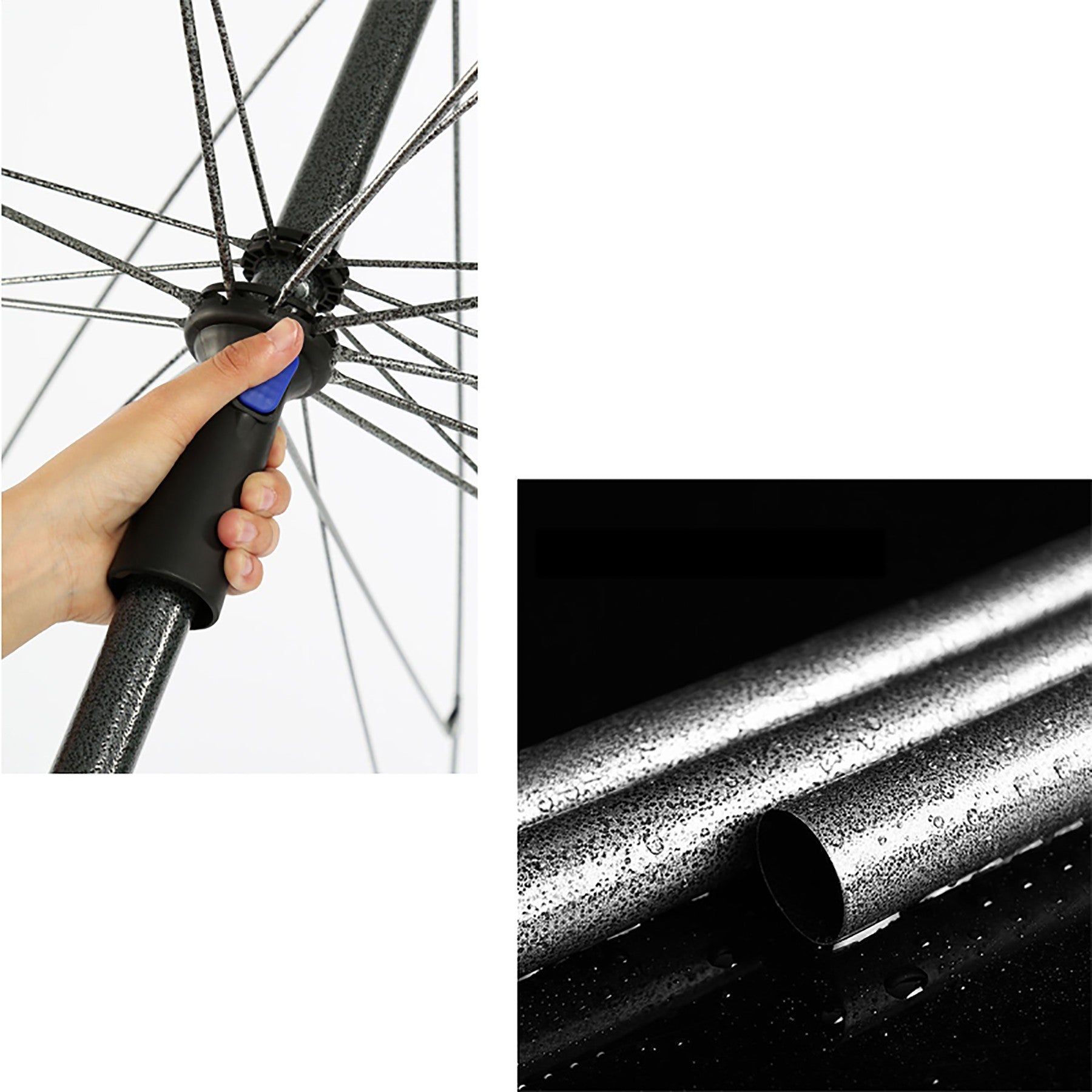 Made from lightweight and waterproof pongee fabric, this umbrella features a breathable double layer canopy and a sleek top. The high-quality stainless steel frame provides stability in strong winds. With a unique reverse folding design, it can be opened effortlessly while keeping you dry. The C-shaped handle allows for hands-use. Stay dry and stylish with this innovative umbrella. 41.3′ L x 29.5′ W