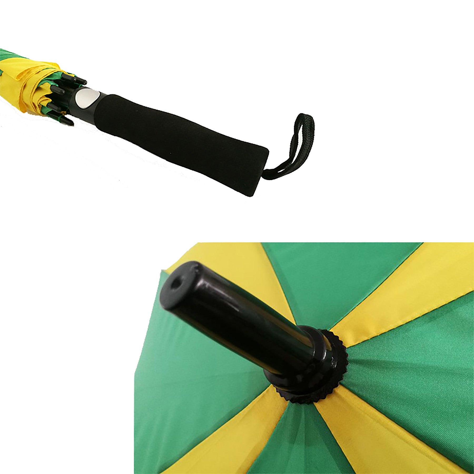 Introducing our premium golf umbrella crafted from durable 190T polyester with a sturdy fiberglass shaft, rib, and comfortable EVA handle. Conveniently portable with matching sleeve and shoulder strap. Available in solid colors and two-color mixes to match your style. Elevate your golf game with this sleek and durable umbrella. 55″ L