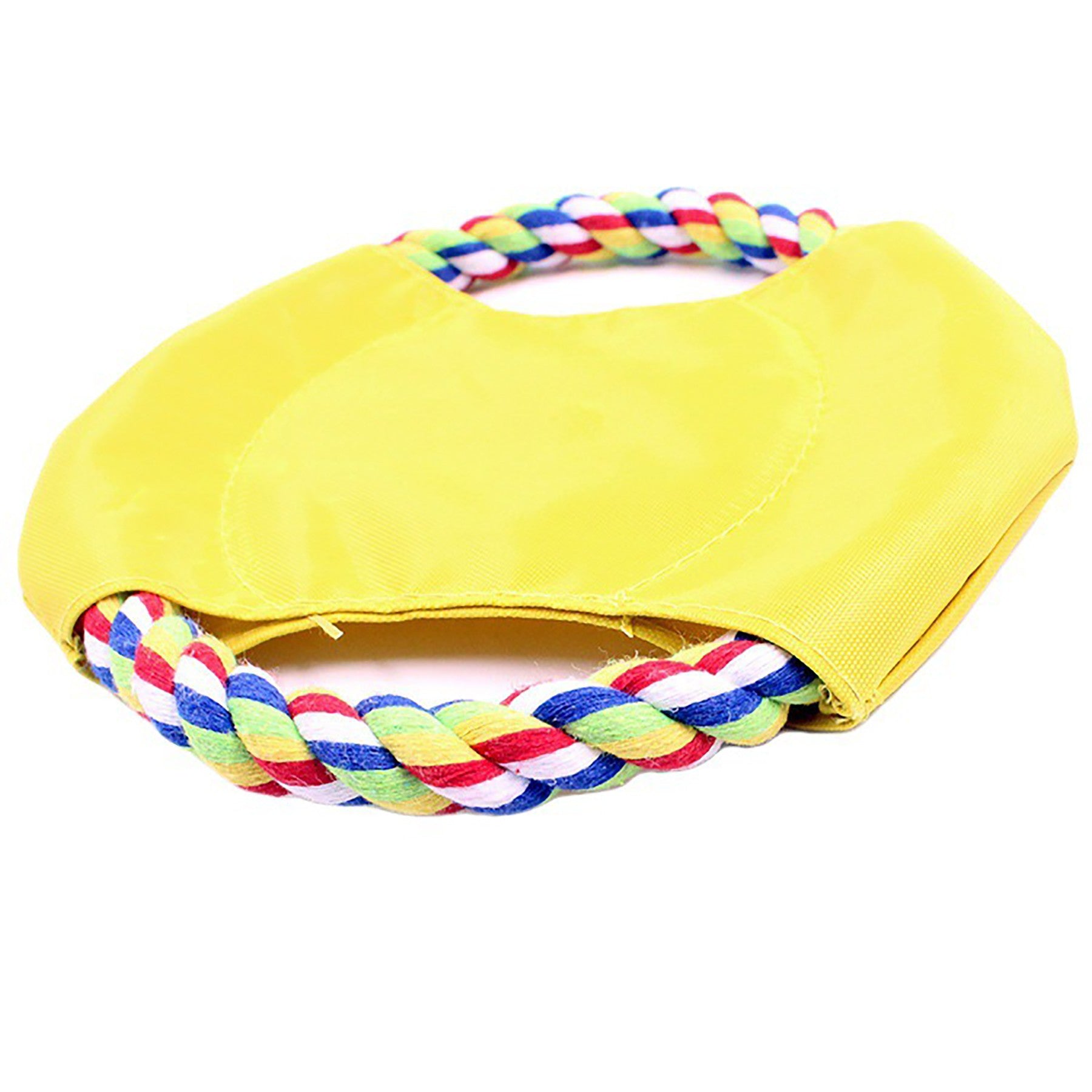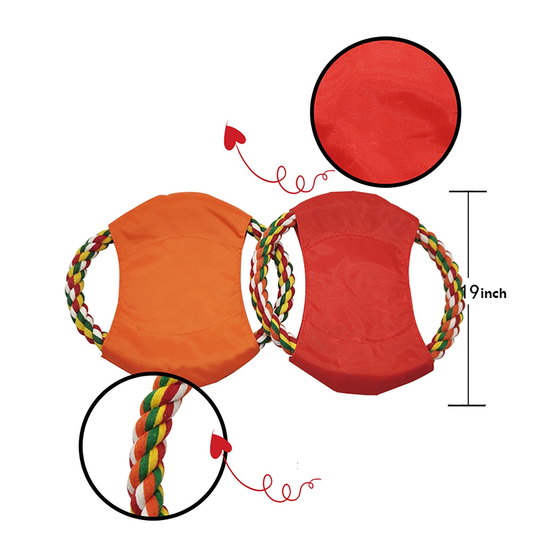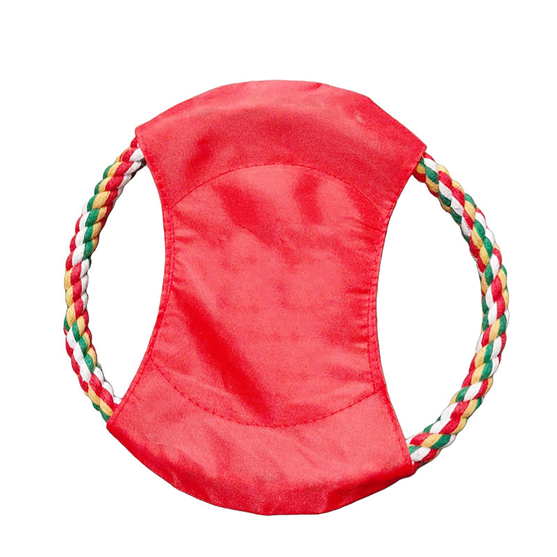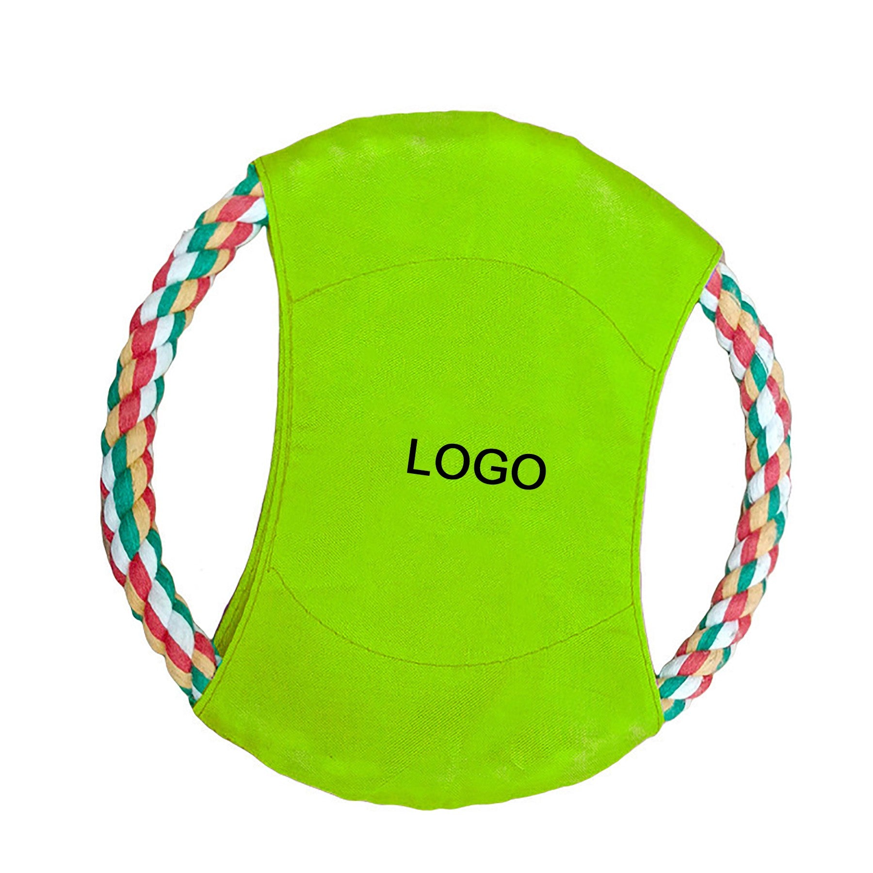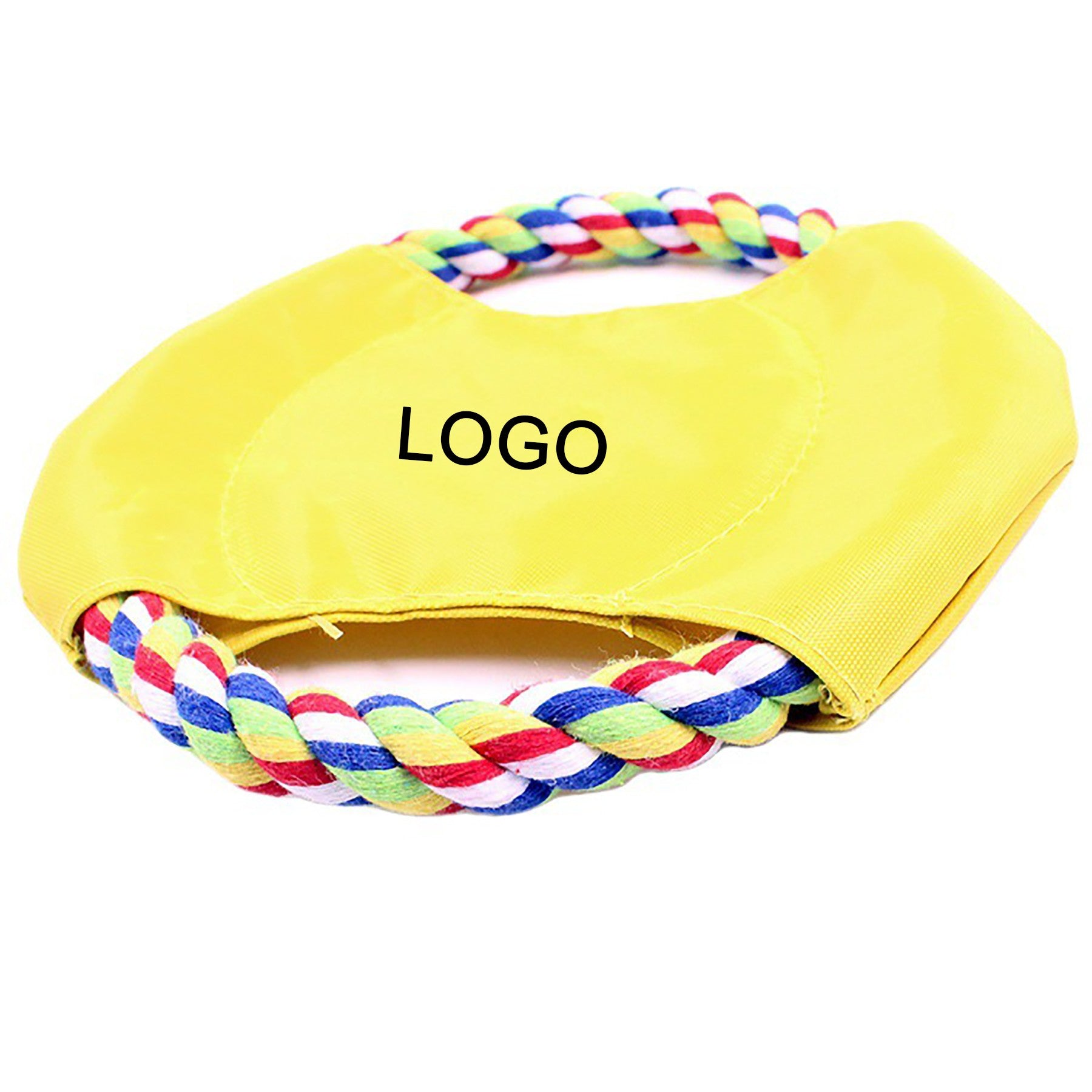 This toy flyers feature a durable rope and sturdy nylon material that can hold at least 40 lbs of resistance when playing tug of war with your pet. Made out of polyester yarn (rope), oxford fabric 420D (middle) and Decron (stitching). Imprint your company name and logo on the center of this chew toy to promote animal shelters, pet care stores, parks departments and more. 7″ L x 7″ W