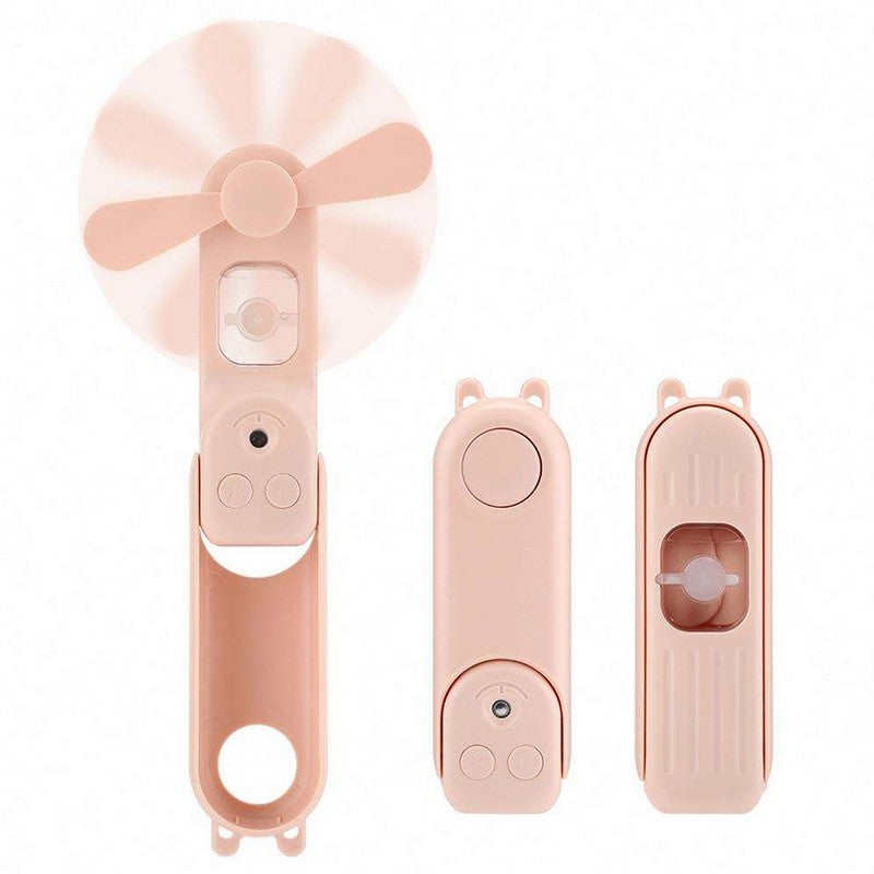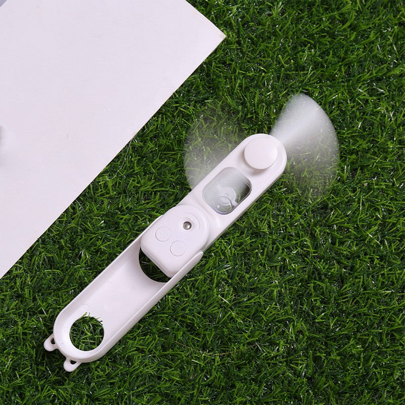 Mini fan humidifier. The mist from the fan not only cools you down, but also prevents your face, hands and nose from becoming dry, keeping you cool and moist on hot days. The mist is gentle and will not soak your face or ruin your makeup. The collapsible design makes it easy to carry and store. It’s convenient and can easily fit in your bag, take it anywhere and stay cool at all times, or just fold the handle and place it on your desk. The fan is quiet and silent, bringing you a strong wind while quietly accompanying you to sleep. Refreshing and cooling you in seconds, it’s the ideal way to add coolness and moisture to a hot summer day. If you accidentally touch the rotating blades, the soft blades will automatically stop to keep you safe. 5.35′ L x 1.69′ W x 1.69′ H