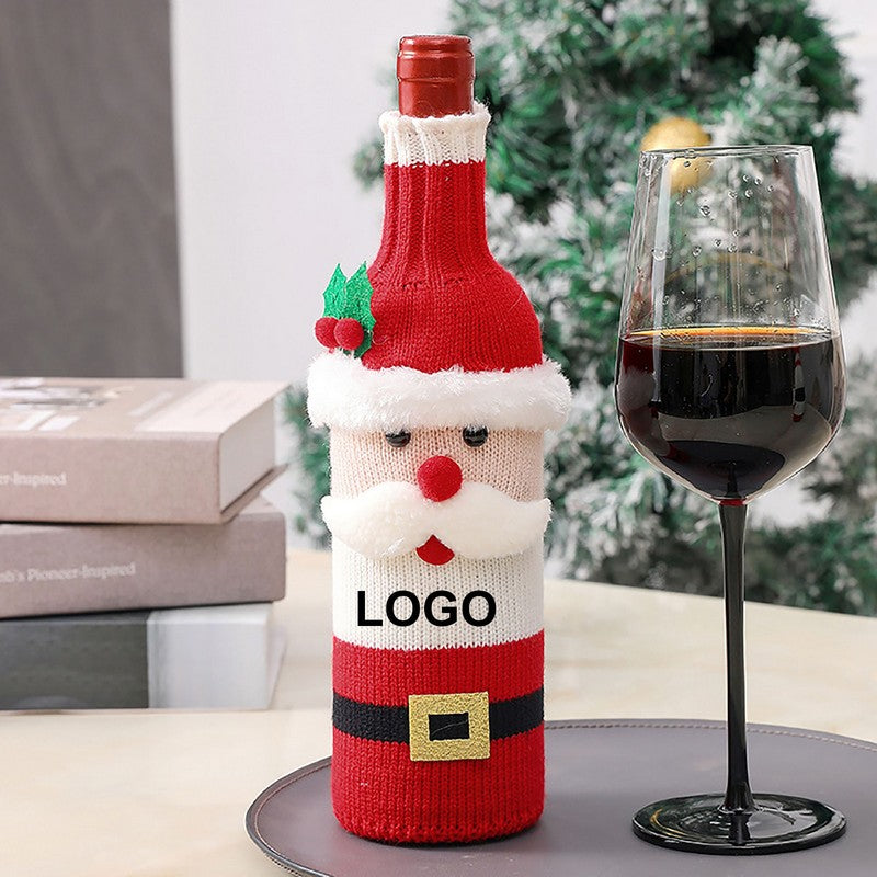 Custom Xmas Dress Up Knitted Wine Bottle Bag