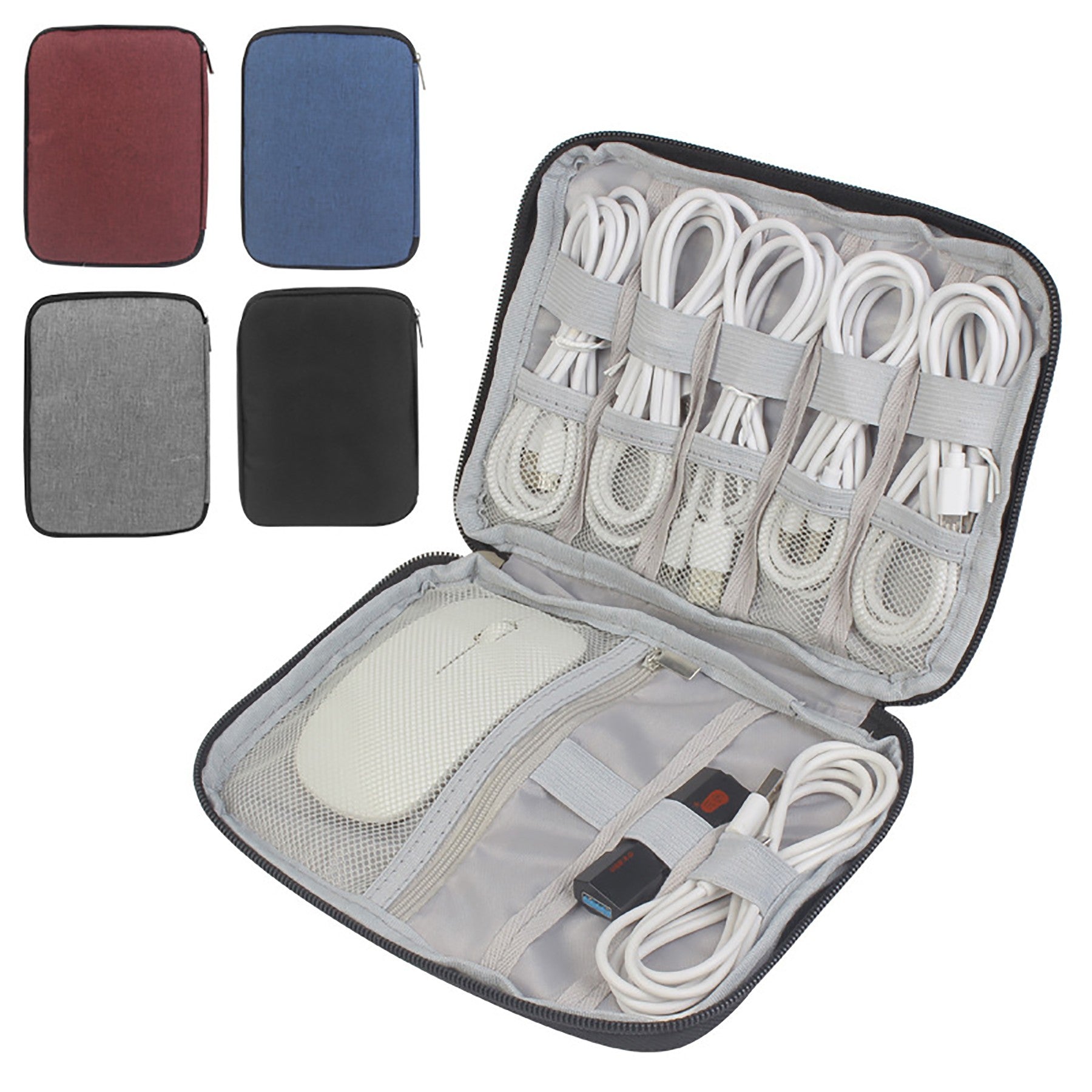 This multipurpose storage bag can hold all your essentials in one place, contains a power adapter, charger, battery, hard drive, memory card, camera, pen, selfie stick, cables, first aid kit, USB cables, scissors, makeup, passport, key, phone, and more. Stay organized and prepared with this spacious bag. 6.3″ L x 4.33″ W x 1.99″ H