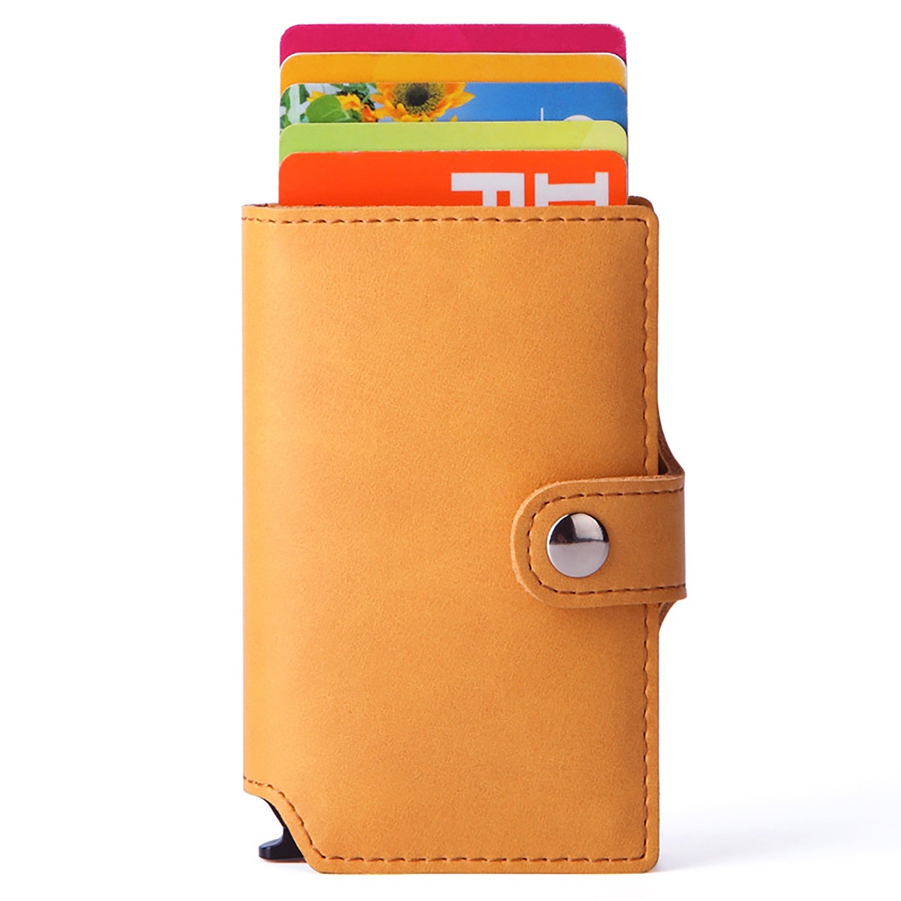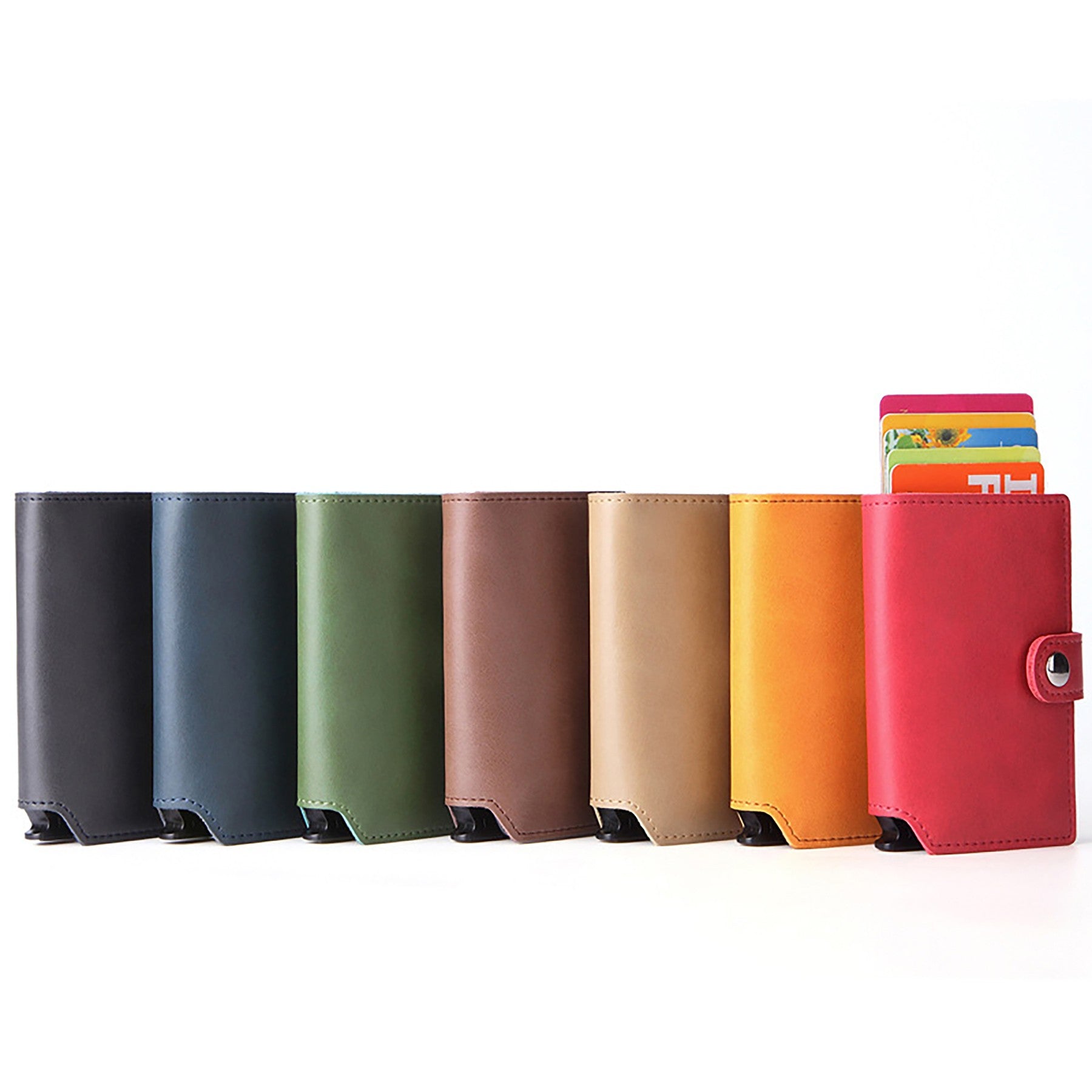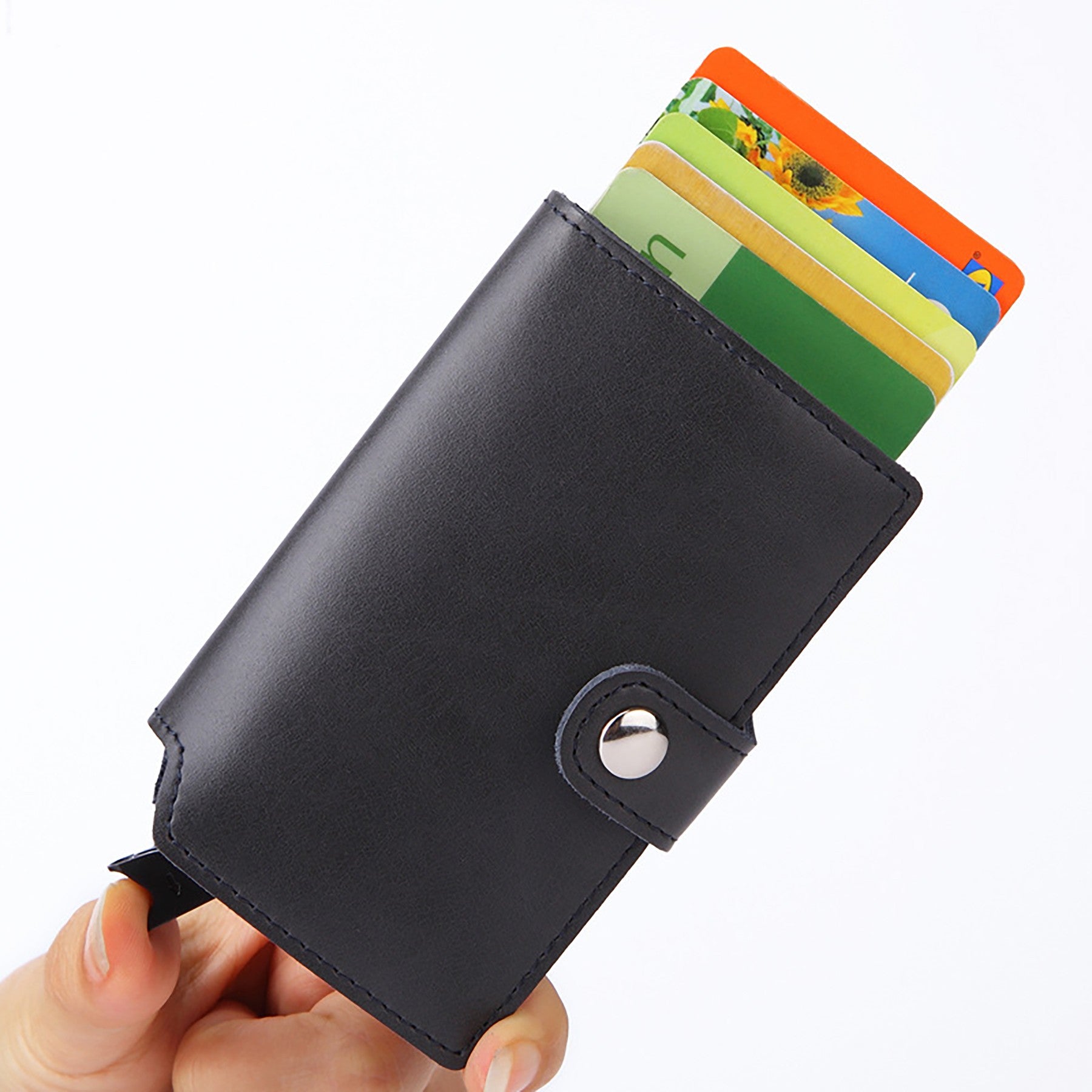 The card case wallet is made of durable aluminum and leather, providing comfort and protection for your cards. RFID-blocking technology prevents unauthorized access to personal information, protecting your RFID credit cards, debit cards, and ID cards from electronic pickpocketing while traveling. 3.89″ L x 2.5″ W x 0.6″ H