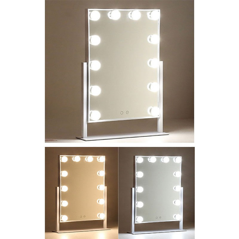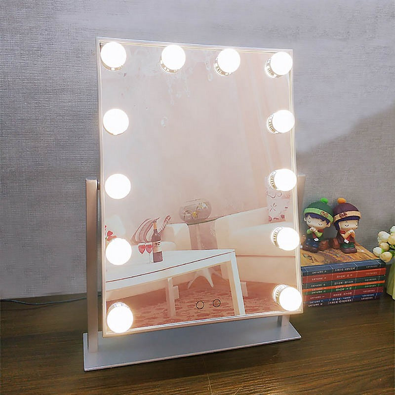LED Makeup Mirror is the ideal size for perfect makeup application. It features 12 LED bulbs with warm light/daylight settings, an aluminum frame, and high-quality LED bulbs for a strong and solid feel. The mirror is built to last with top-quality materials and non-replaceable LED bulbs that have a lifespan of 50,000 hours. 19′ L x 4′ W x 2′ H