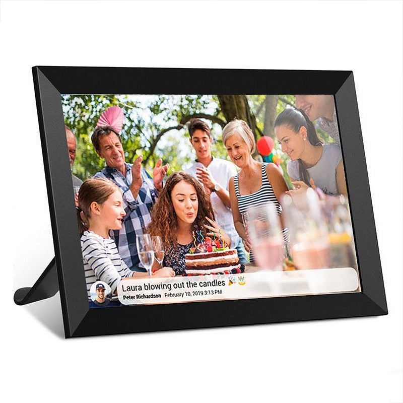 This digital photo frame features a 1280*800 resolution IPS touch screen for clear visuals, with a removable stand for portrait or landscape viewing. The display shows title, weather, and clock, which can be turned on/off with software updates. Easy setup with an intuitive touch screen interface suitable for all ages. A perfect gift for birthdays, weddings, and family gatherings. 15.59″ L x 0.47″ W x 0.47″ H