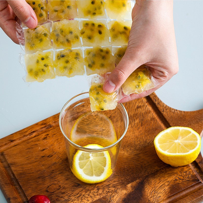 Ensure your ice is 100% pure and healthy with these disposable self-sealing ice cube bags that feature a built-in self-sealing valve to prevent liquid from leaking out of the storage bag, stopping ice cubes from absorbing unwanted odors from your refrigeration appliance or its surroundings, and note that these bags are for one-time use and cannot be reused, to use them, first pour water or your preferred beverage into the bag using a silicone funnel, then after filling, squeeze the opening and flip the bag to activate the self-seal and lock in contents, next place the bag in a refrigeration appliance to chill until solid, and finally tear open the bag once chilled and use the ice as needed, and these handy self-sealing ice cube bags streamline ice storage and preparation, making them ideal for situations where refrigeration appliance space is limited so you can enjoy your favorite chilled drinks anytime, anywhere. 11.81′ L x 7.48′ W x 7.48′ H