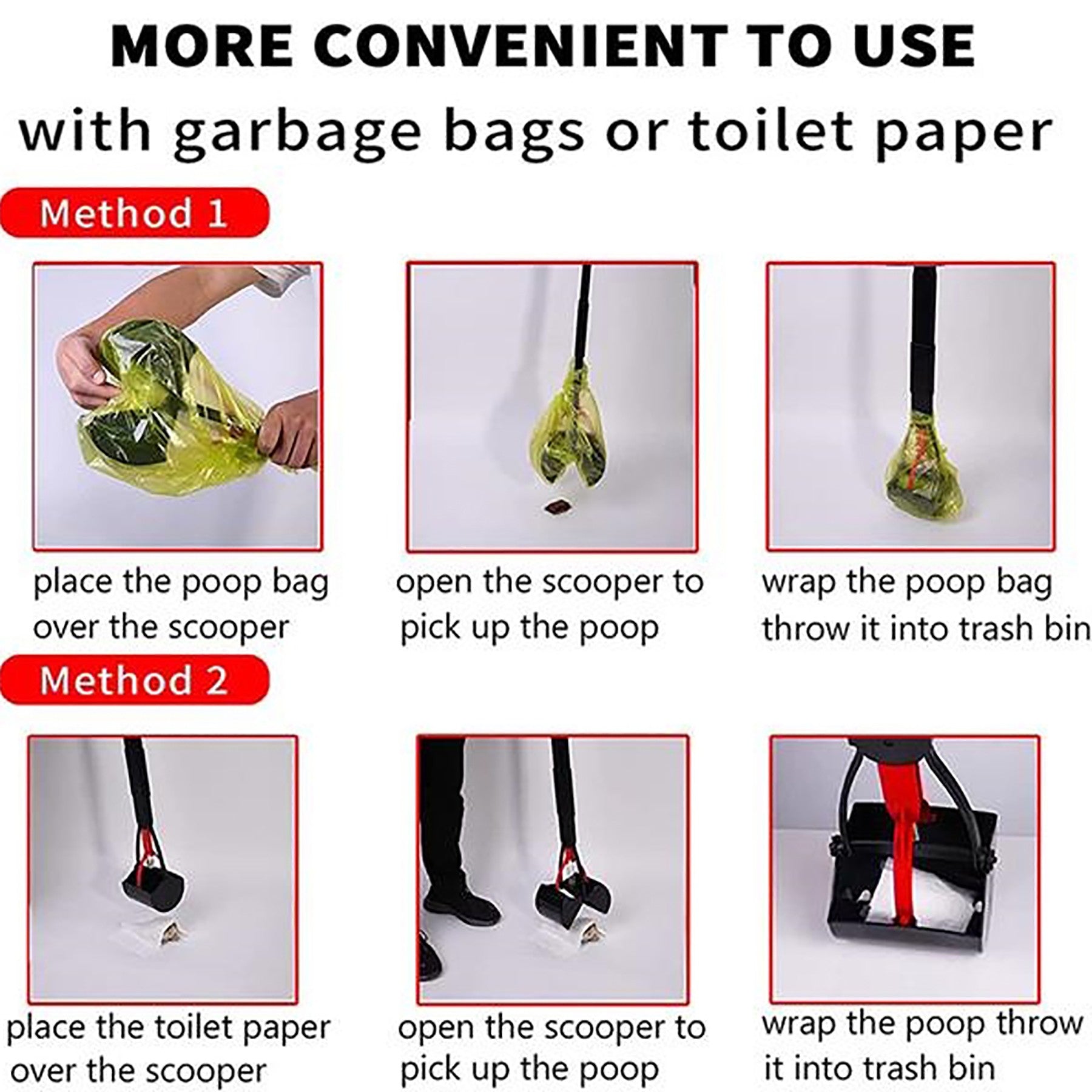 This pooper scooper is designed to easily pick up poops of large/small dogs, cats and many other kinds of pets from multiple surfaces, grass, gravel, concrete, dirt, etc. The pet poop scooper features a spring-loaded mechanism that opens and closes the jaw clamp with a simple squeeze of the handle. Squeeze to open; release to clamp shut. You can also wrap a plastic bag around the clamp so that you’d only need to throw away the loaded bag after picking up the waste. 23 5/8″ L x 5 3/8″ W