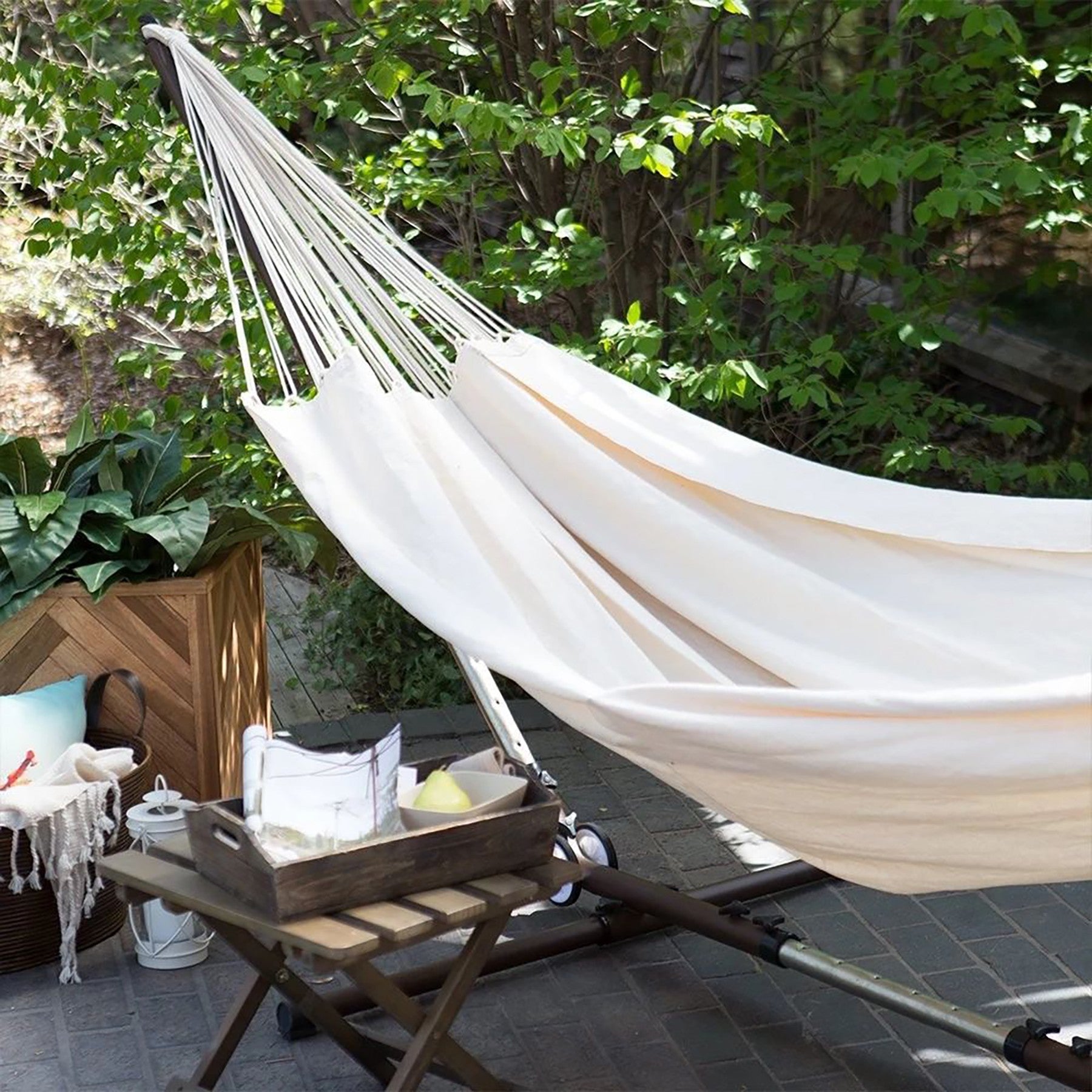 Preparing the hammock takes only a few seconds. Then secure the hammock to a hammock stand or hang it between two trees. Arrange your hammock quickly in the most convenient location and enjoy the relaxation it brings. Not only that, it can also be hung between trees in your backyard to enjoy the beauty of nature or to enjoy a peaceful nap. 78.7″ L x 59.05″ W