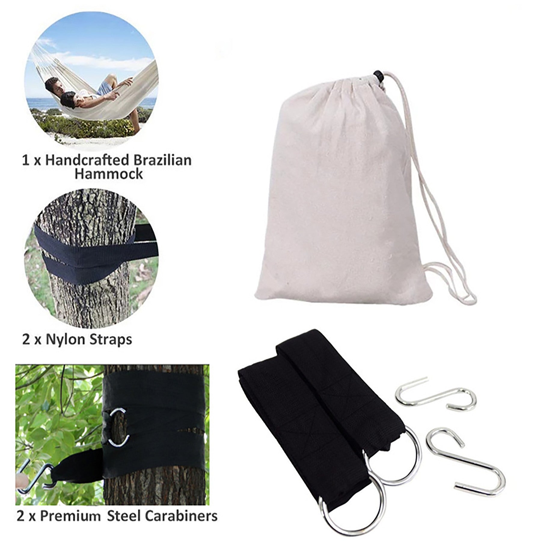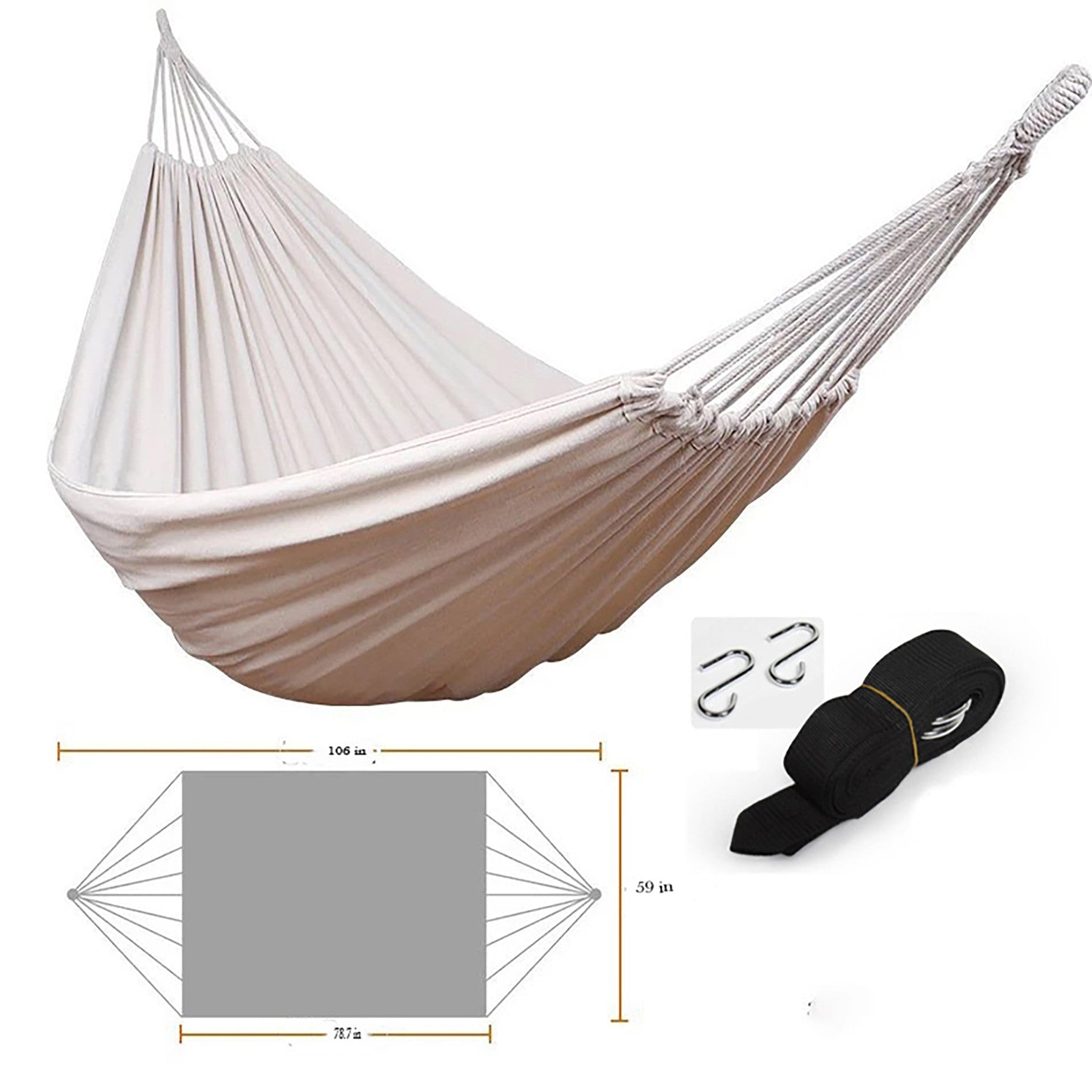 The hammock comes with a compact carry bag so you can take your hammock on the go. The multi-purpose hammock can be used as a patio hammock, backyard hammock, camping hammock for napping, relaxing, camping, reading, etc. This is a must have hammock for everyones camping equipment collection. 106″ L x 78.7″ W x 59″ H