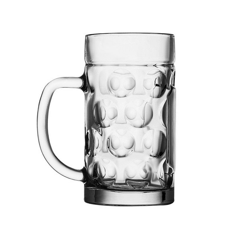 Made of durable, BPA and lead-glass, the dimpled design enhances the taste of your beer. The German beer stein style and easy-to-hold handle make it perfect for any beverage. Ideal for beer enthusiasts or as a gift. Cheers to a versatile and stylish glassware option. 4.25′ L x 7.87′ W x 7.87′ H