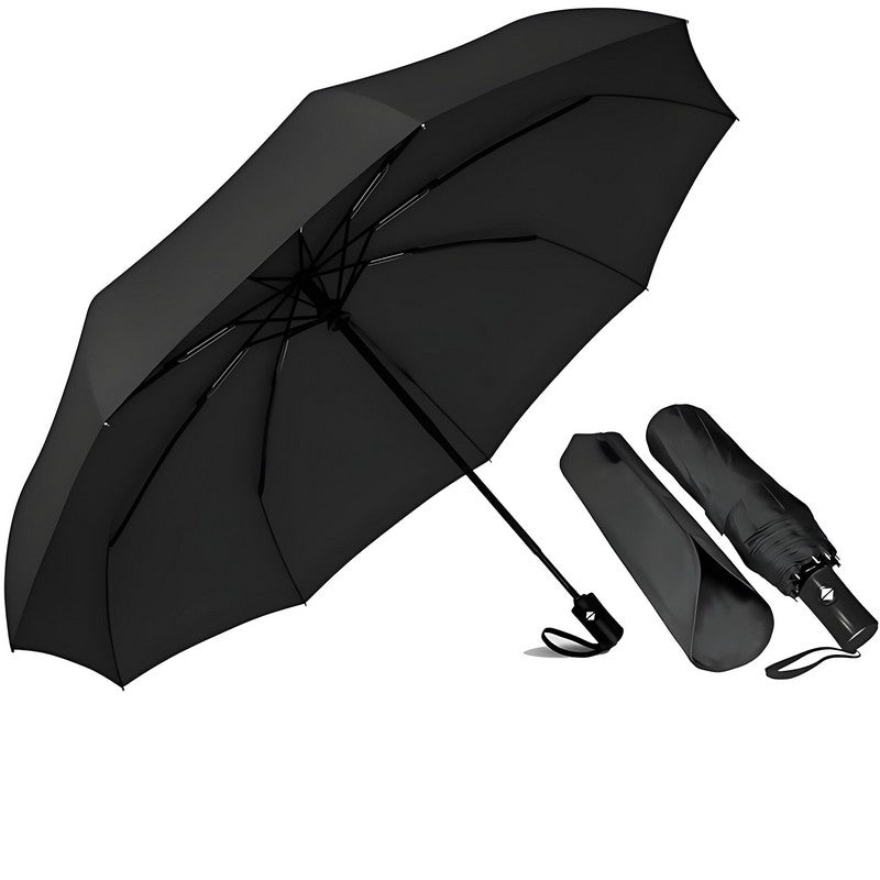 One-handed operation with auto open/close button. Fiberglass ribs prevent umbrella from turning inside out in strong winds. Compact design fits in work bag, purse, backpack, car. Waterproof and dries instantly. Defends against the elements. 41.34′ L x 25.59′ W