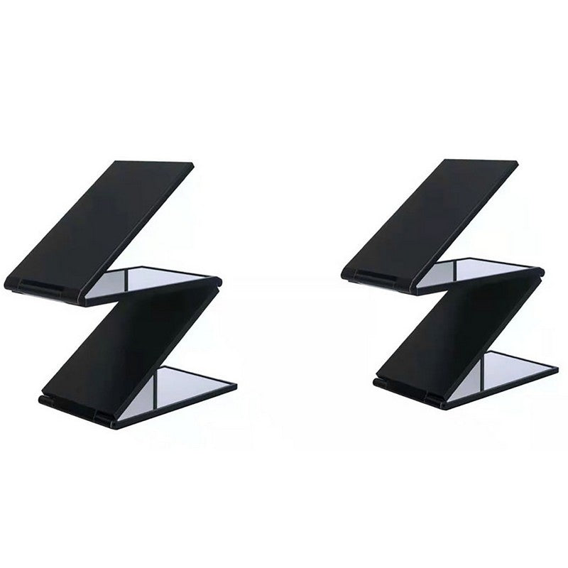 This compact 4-way mirror is ideal for hairdressing, makeup, styling, and travel. It provides clear, undistorted images without causing dizziness. The foldable, lightweight design makes it easy to carry. Made of high-quality plastic, the frame is durable and the height is adjustable for convenience. Perfect for achieving precise details, this mirror can be hand-held or placed on a counter. 2.76′ L x 0.94′ W x 0.94′ H