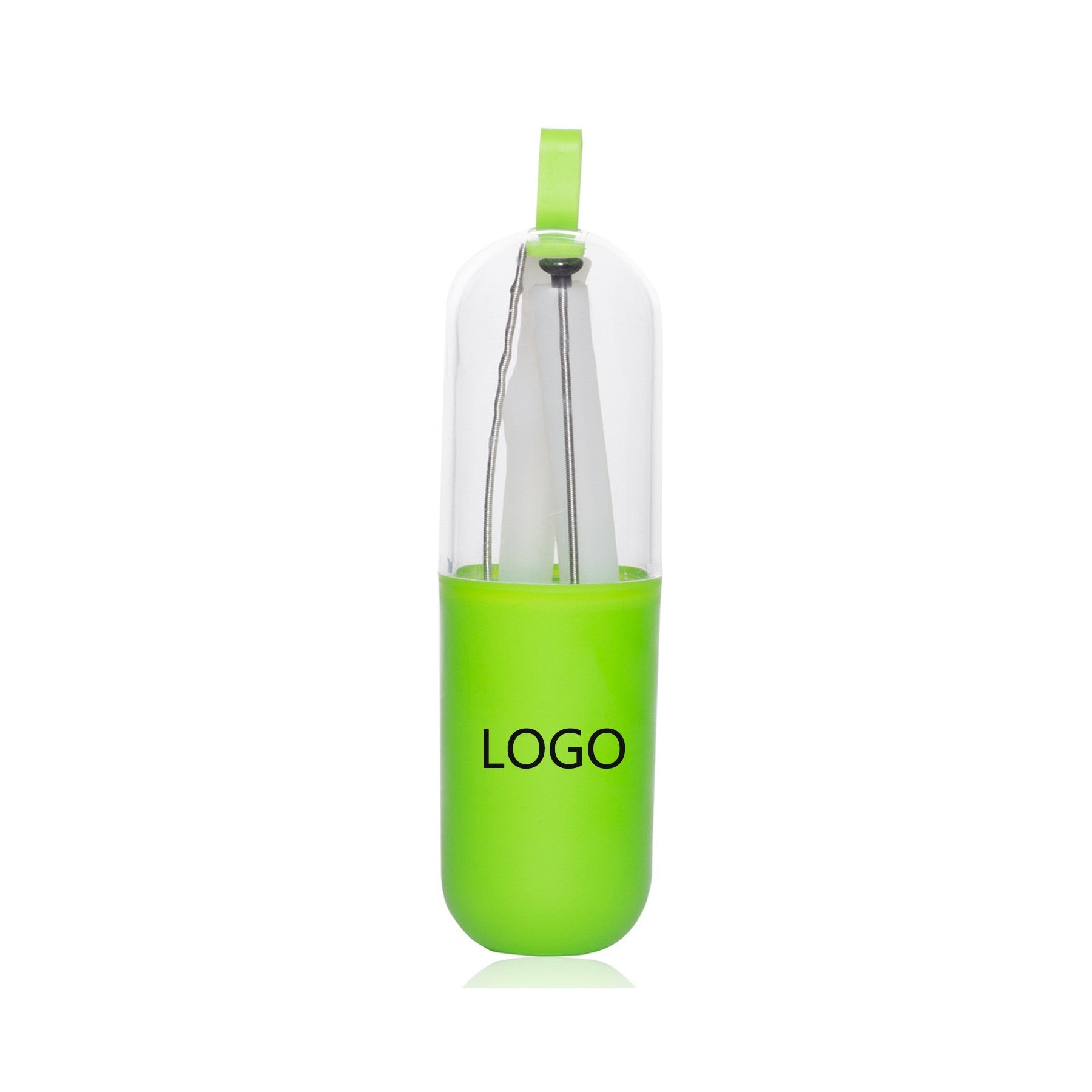 Our collapsible silicone straw has a unique design that keeps drinks at a comfortable temperature. It easily collapses for storage in a compact case and comes with a cleaning brush. Perfect for bars and beverage distributors, it’s a great promotional item. 3 3/8″ L x 2 15/16″ W x 7/8″ H