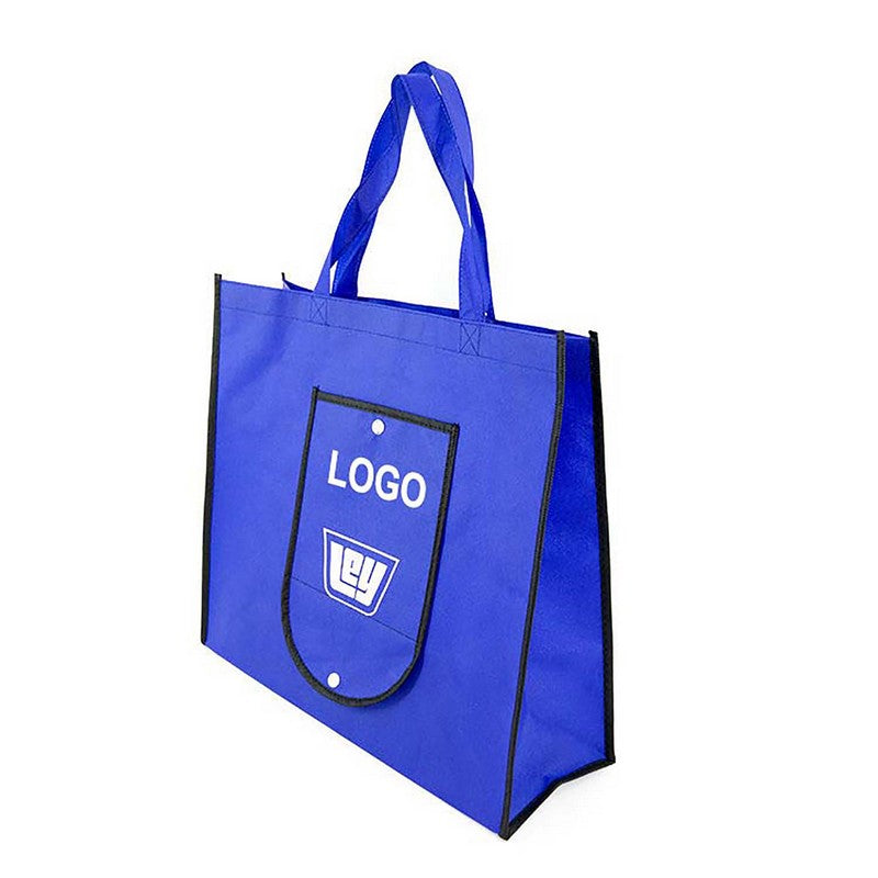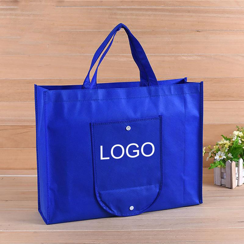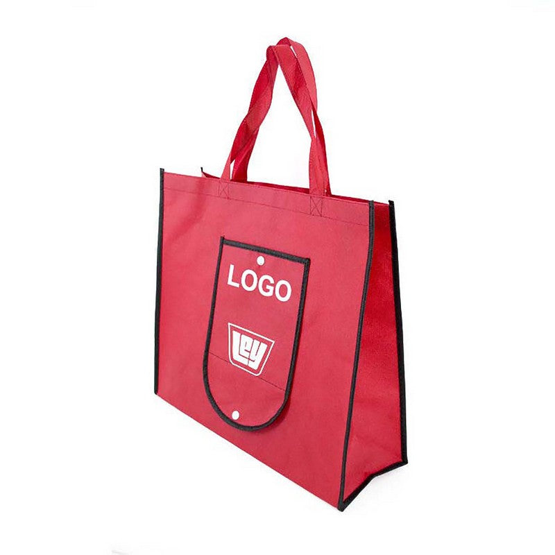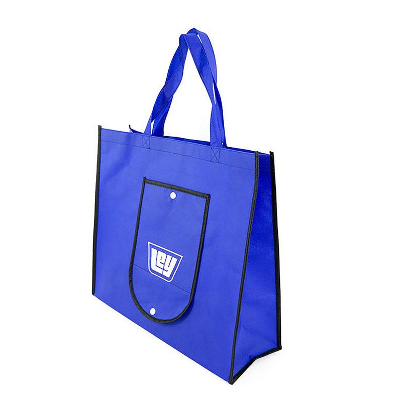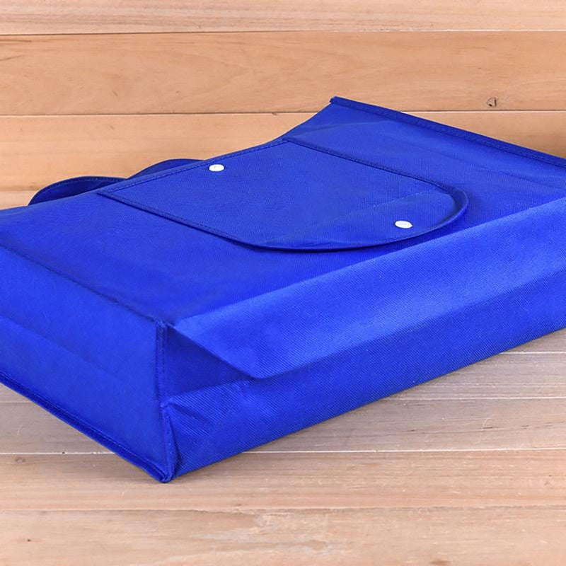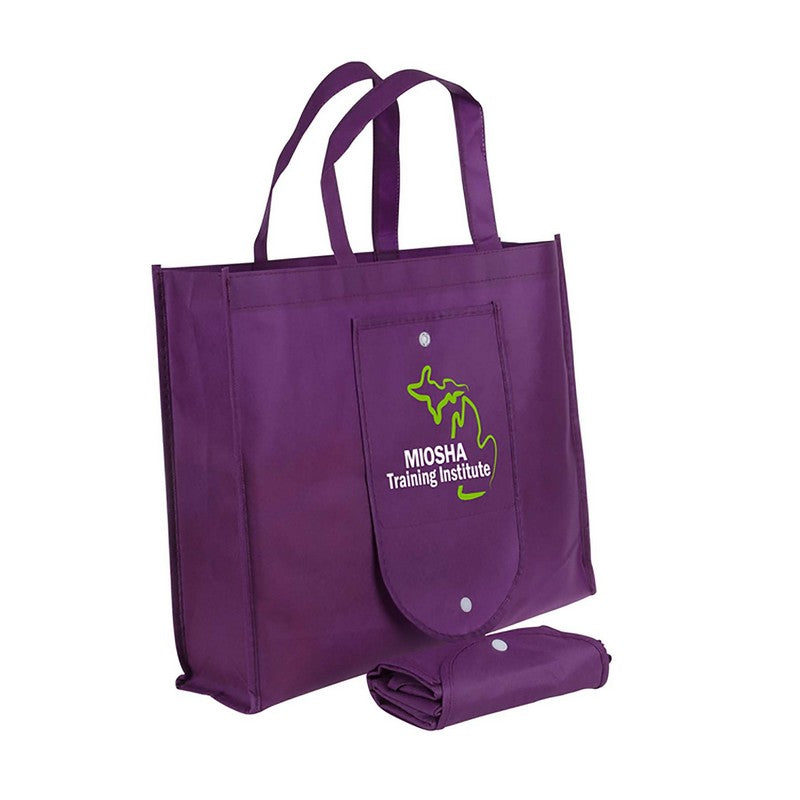 Ditch wasteful plastic and bring this folding tote when you shop. Made of durable material with a snap closure and deep gusset. Perfect for grocery shopping, the beach, or flea markets. Customize with your logo for a branded item that keeps your message visible. 15 3/4′ L x 14 1/2′ W x 10′ H