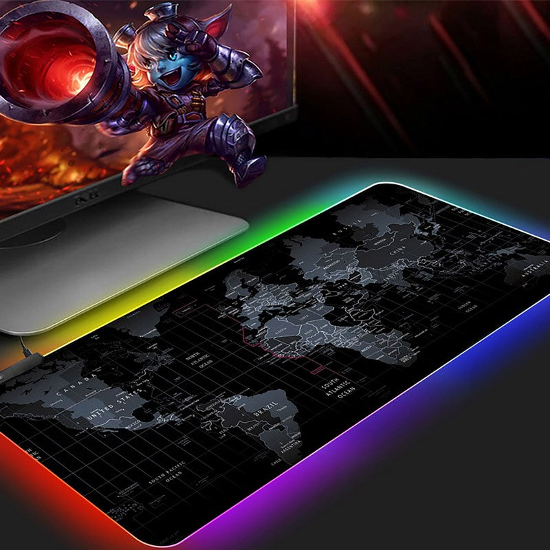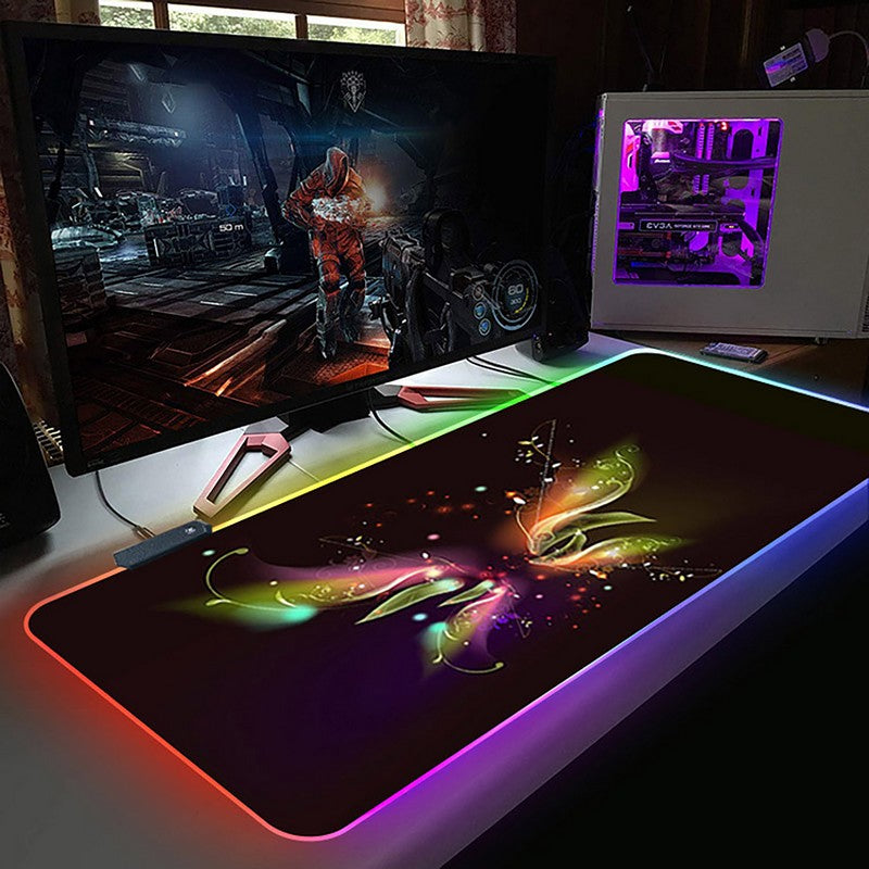 Spacious mouse pad for keyboard and mouse. Great for gamers and office workers. Static colors and dynamic lighting effects. Easy access button for lighting effects. Stable rubber base prevents slipping. Waterproof fabric surface for smooth mouse movements and protection from spills. Thicker than regular mouse pad for comfort and responsiveness. 35.43″ L x 15.75″ W x 15.75″ H