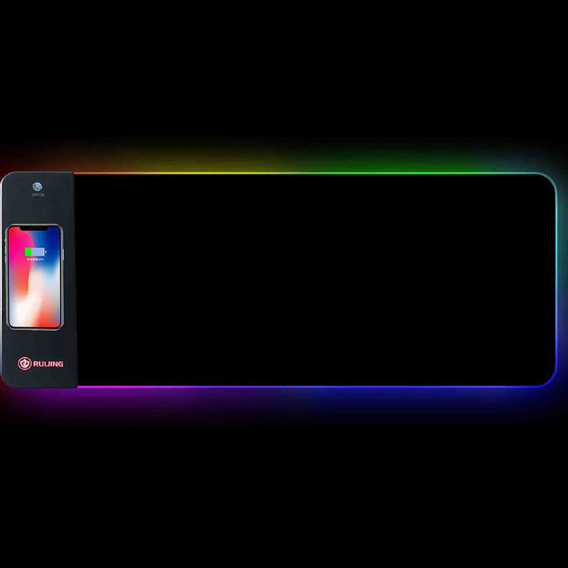Spacious mouse pad for keyboard and mouse. Great for gamers and office workers. Static colors and dynamic lighting effects. Easy access button for lighting effects. Stable rubber base prevents slipping. Waterproof fabric surface for smooth mouse movements and protection from spills. Thicker than regular mouse pad for comfort and responsiveness. 35.43′ L x 15.75′ W x 15.75′ H