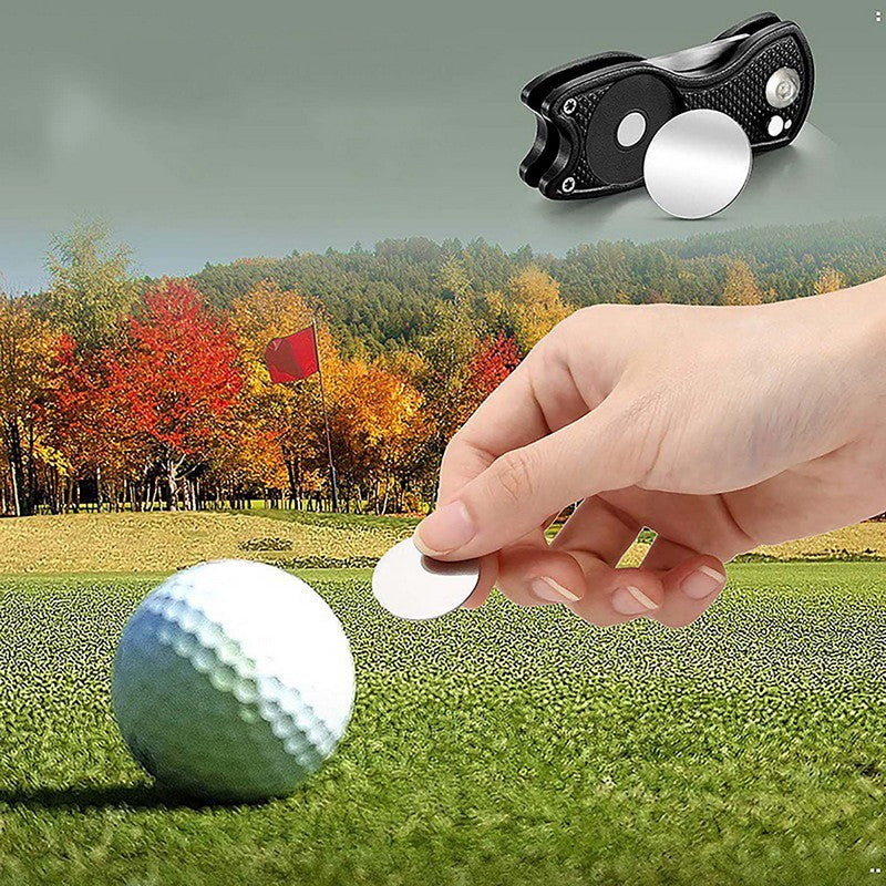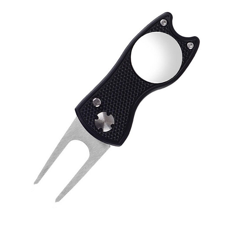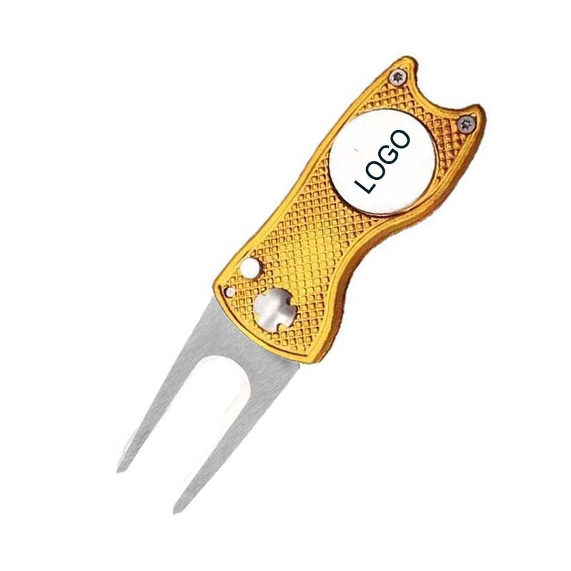 The golf divot repair tool is made of quality stainless steel and aluminum, durable and solid, lightweight and portable. the fork can clean groove, fix divot, and sharpen your golf pencils; Magnetic design helps you mark the place; And the U-shape bottom can hold your golf club.This foldable golf divot tool to avoid catch on your pocket or finger.Customized design is available. 4.49′ L x 1.14′ W
