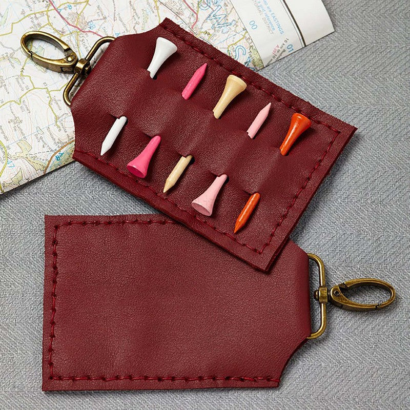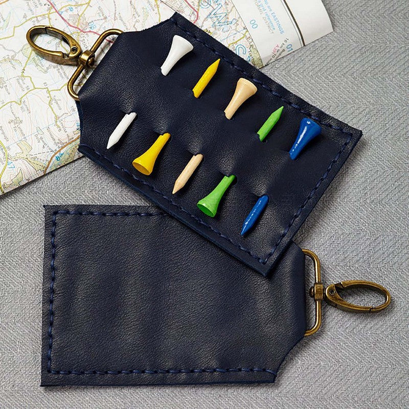 This handmade, personalised, leather golf tee holder from Parkin & Lewis is a stylish and functional accessory for golfers.It’s the perfect, thoughtful gift for pro and amateur golfers alike. With 5pcs bamboo golf tee. 5.1′ L x 3.3′ W