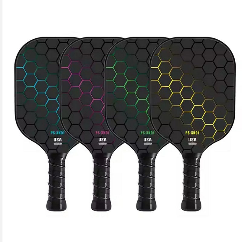 This pickleball set of unbeatable value 4 fiberglass pickleball paddles, 2 outdoor pickleball balls + 2 indoor pickleball balls, 4 pickleball lead tapes and 1 pickleball bag to accommodate this racket set of 4 with all your essential pickleball accessories. This pickleball paddles 4 pack are made of top-grade fiberglass with excellent strength and stiffness. These light pickleball racquets suit players of all levels. They allow you to swing the paddle for long time with less stress on the shoulder and on the waist. The large spot design is especially friendly to beginners and intermediates. 15.67″ L x 8.19″ W x 0.51″ H