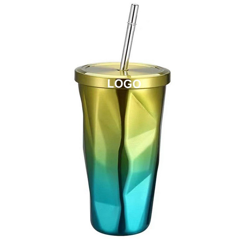 The gradient pink to blue colored bottle features a diamond-shaped design that is lightweight, portable, and easy to carry. It can be customized with an engraved or printed logo and is made of high-grade 18/8 gauge stainless steel. The double-wall vacuum insulation keeps drinks hotter or colder for longer periods. The unique finger-debossed design makes it easy to hold and place in your car. This non-toxic and harmless cold cup is the perfect promotional gift for clients and friends. 7.1″ L x 2.75″ W