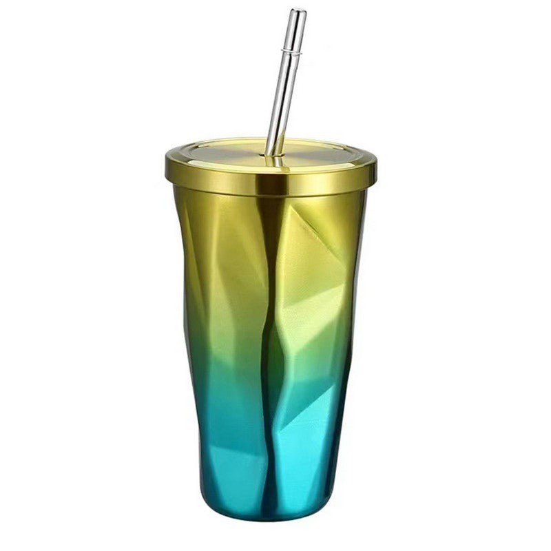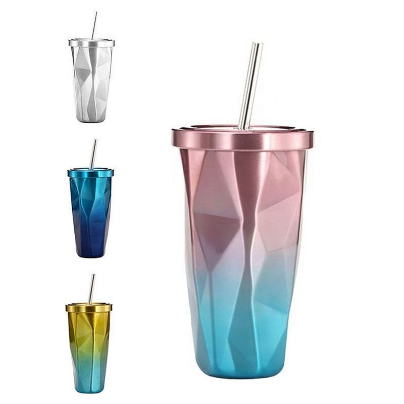 The gradient pink to blue colored bottle features a diamond-shaped design that is lightweight, portable, and easy to carry. It can be customized with an engraved or printed logo and is made of high-grade 18/8 gauge stainless steel. The double-wall vacuum insulation keeps drinks hotter or colder for longer periods. The unique finger-debossed design makes it easy to hold and place in your car. This non-toxic and harmless cold cup is the perfect promotional gift for clients and friends. 7.1′ L x 2.75′ W