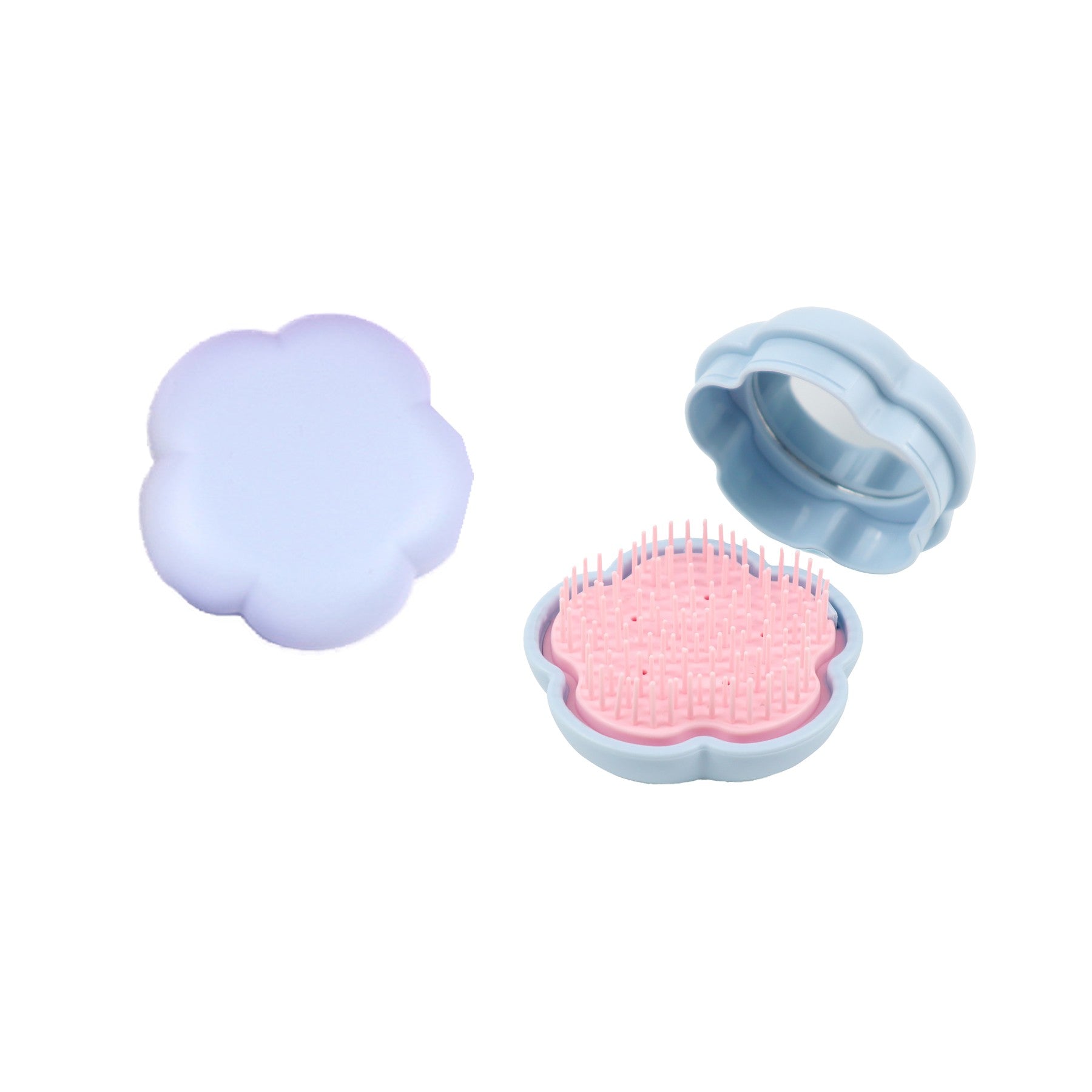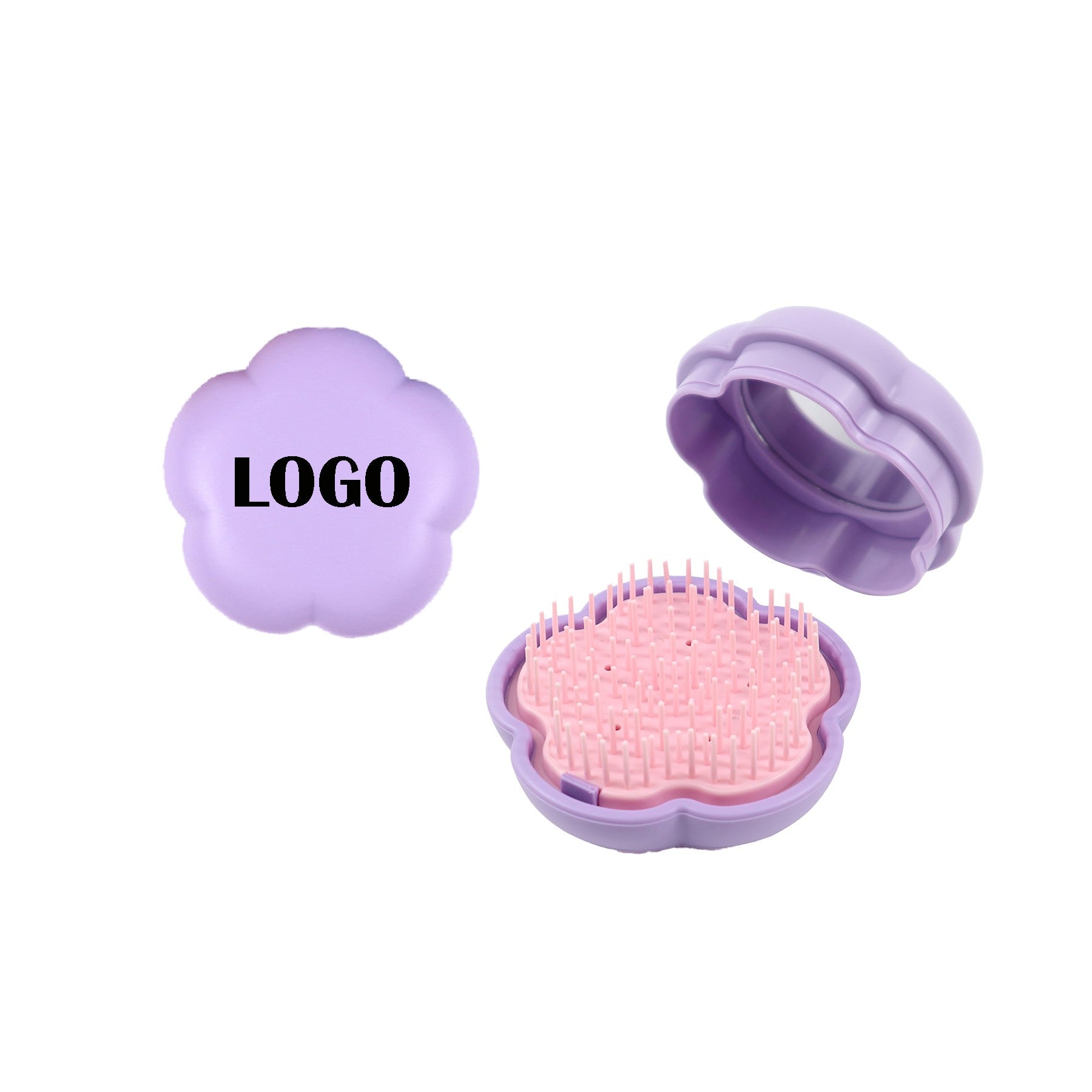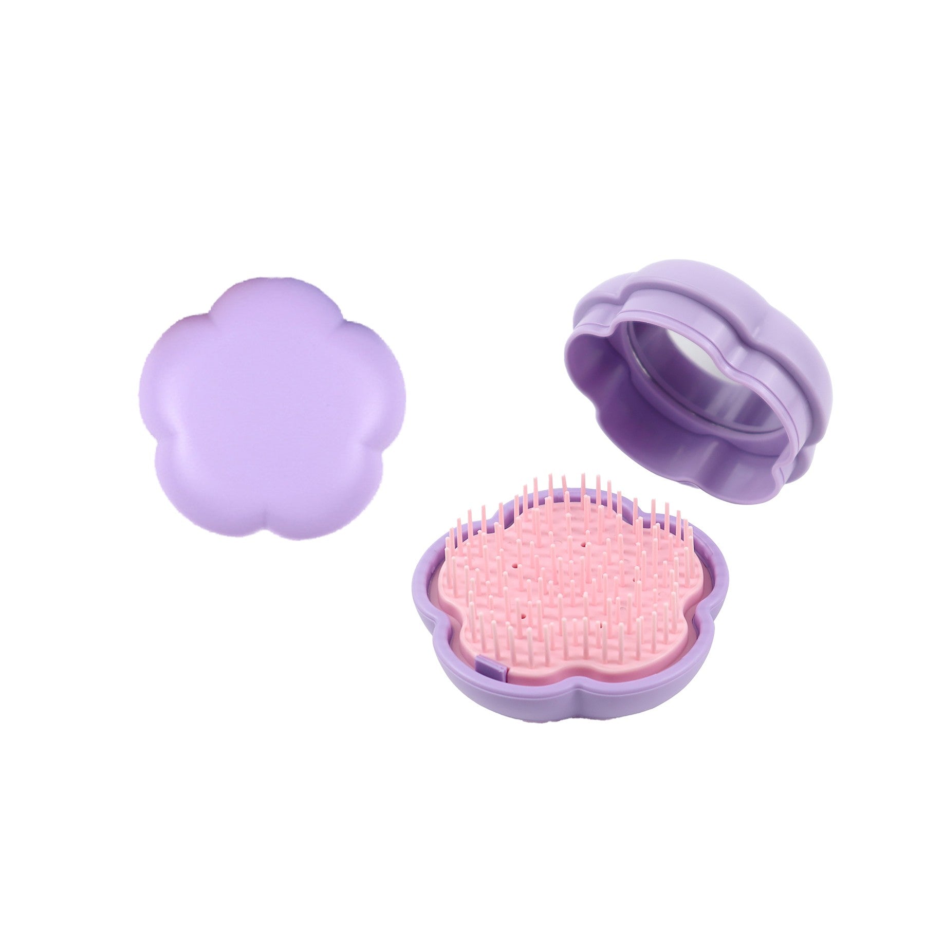 Upgrade your routine with our portable round mirror comb, perfect for touch-ups on the go. This compact comb is lightweight, foldable, and ideal for your purse or travel bag. It features a detangling brush and mirror for easy grooming. Elevate your style effortlessly with this stylish and functional accessory. 2.96″ L x 2.96″ W x 1.74″ H