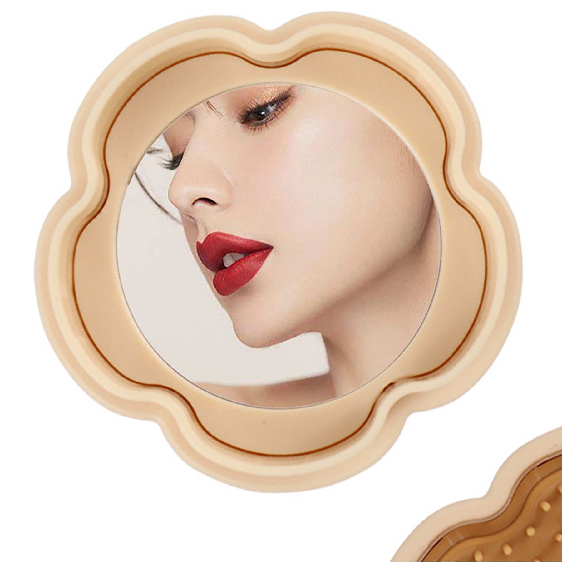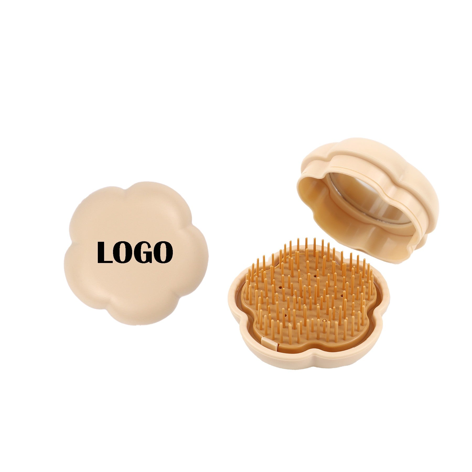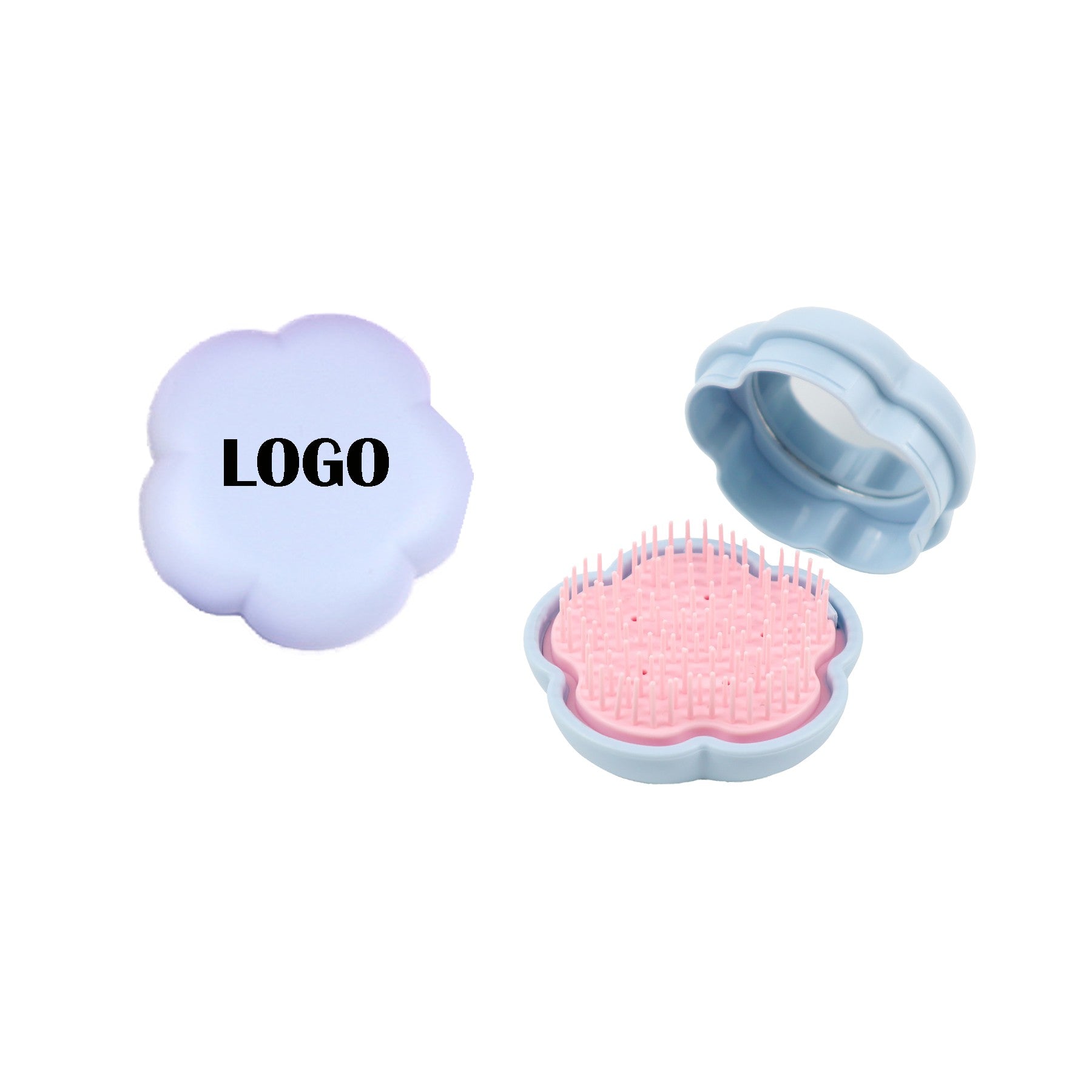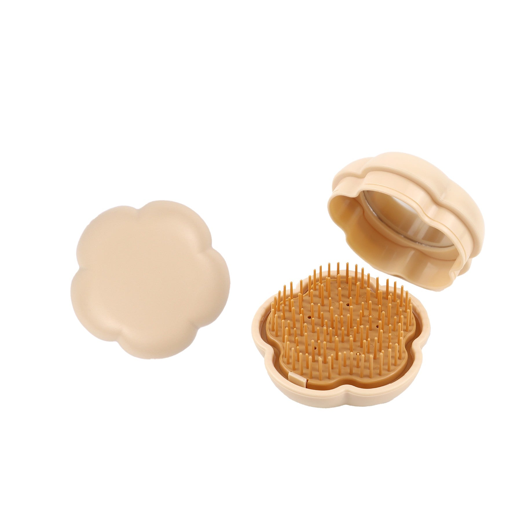 Upgrade your routine with our portable round mirror comb, perfect for touch-ups on the go. This compact comb is lightweight, foldable, and ideal for your purse or travel bag. It features a detangling brush and mirror for easy grooming. Elevate your style effortlessly with this stylish and functional accessory. 2.96″ L x 2.96″ W x 1.74″ H