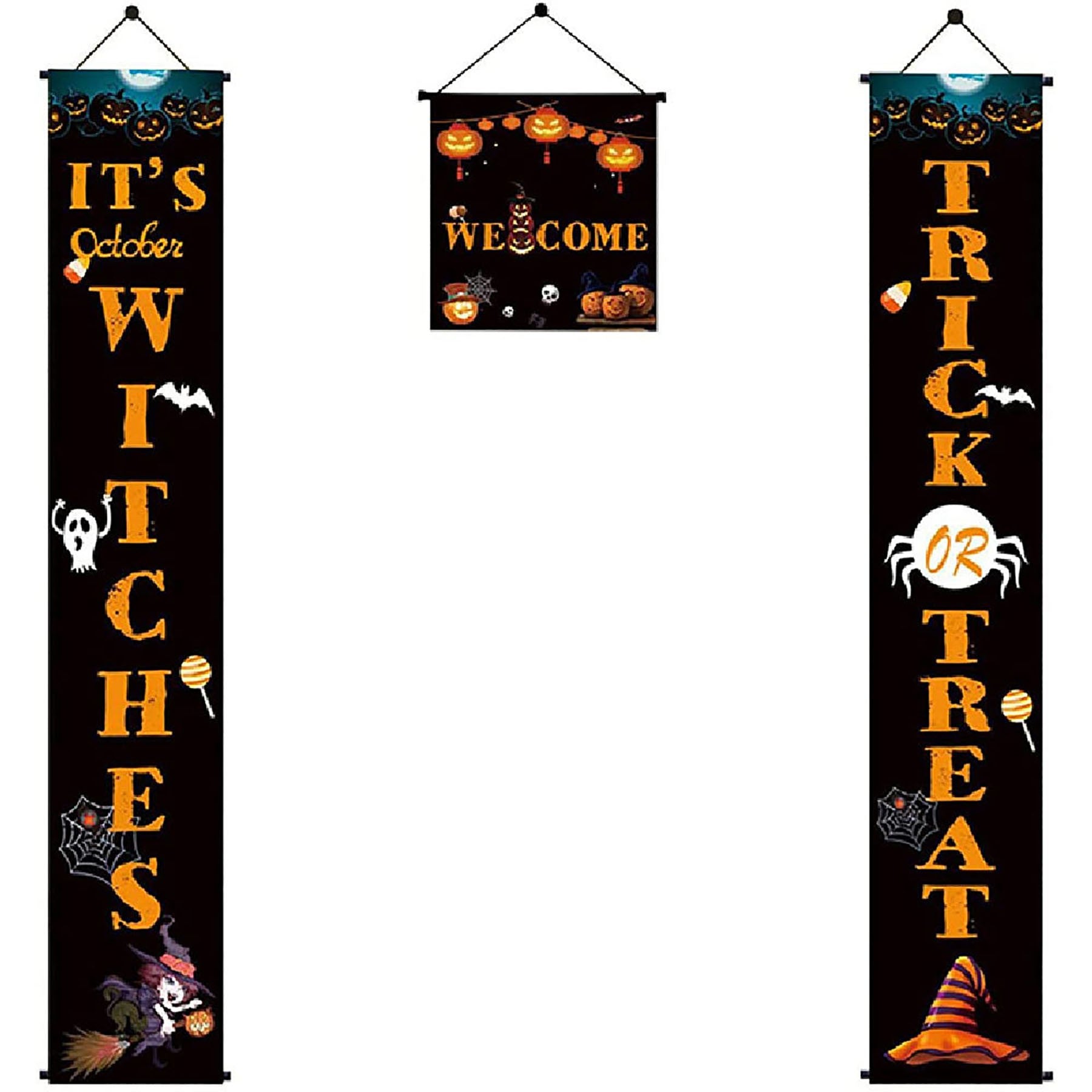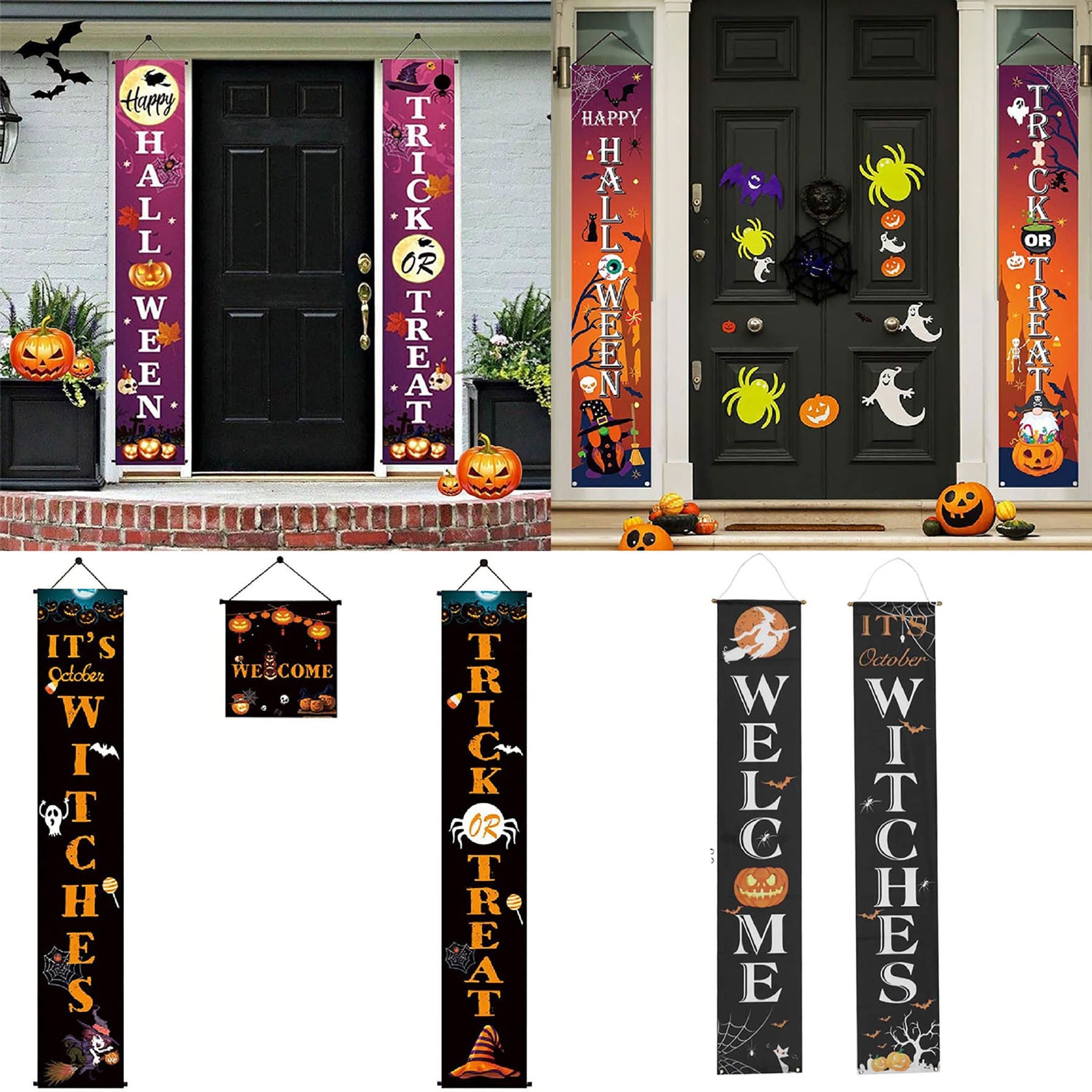 Halloween couplet pumpkin gate flag, bring you a different Halloween.Decorate in the doorway to let your home appear particularly distinctive, add Halloween atmosphere. 11 13/16″ L x 70 7/8″ W