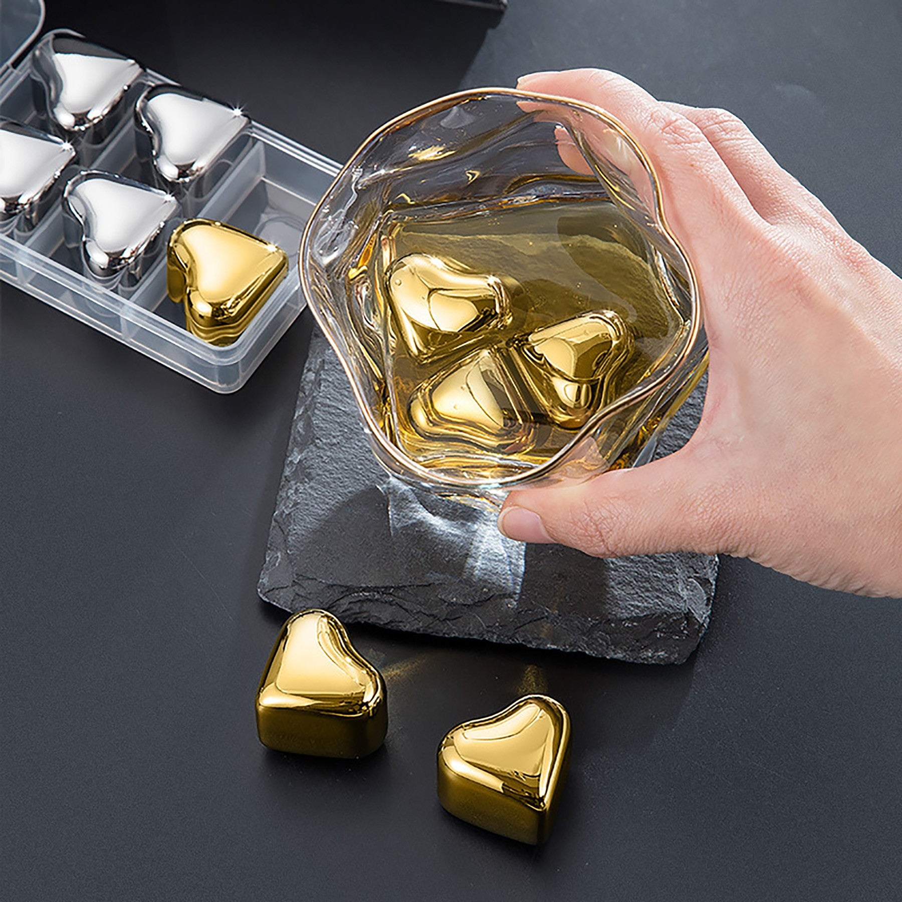 The metal Ice stone brings undiluted, pure whiskey and is the perfect gift set for the discerning whiskey lover. Since you only need 1 ball per glass, this set of 4 balls is perfect for sharing at parties or family happy hours. Relax and have more fun. 1.06″ L x 1.06″ W