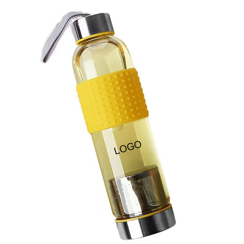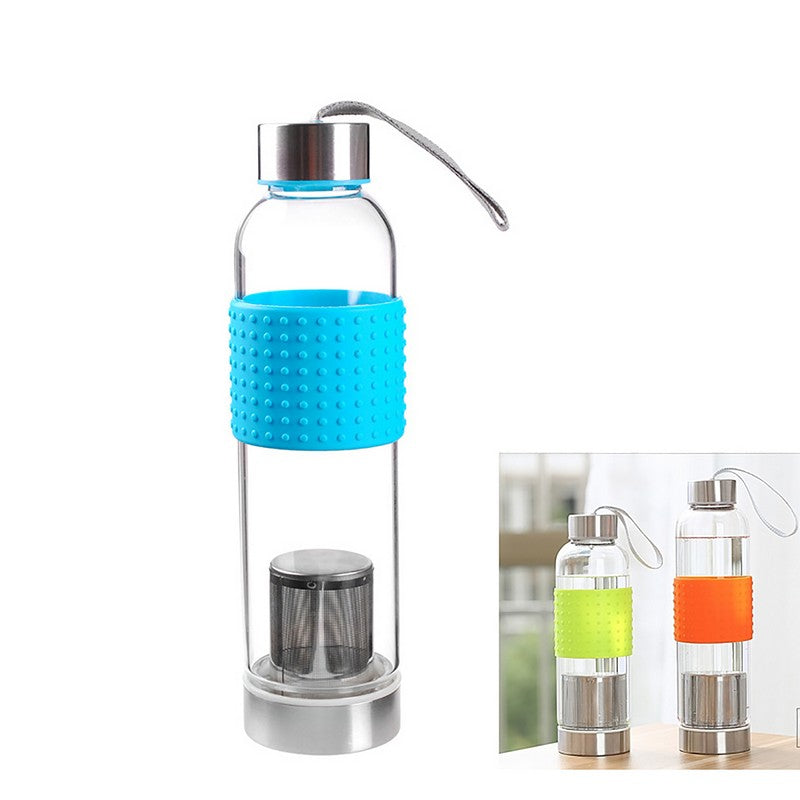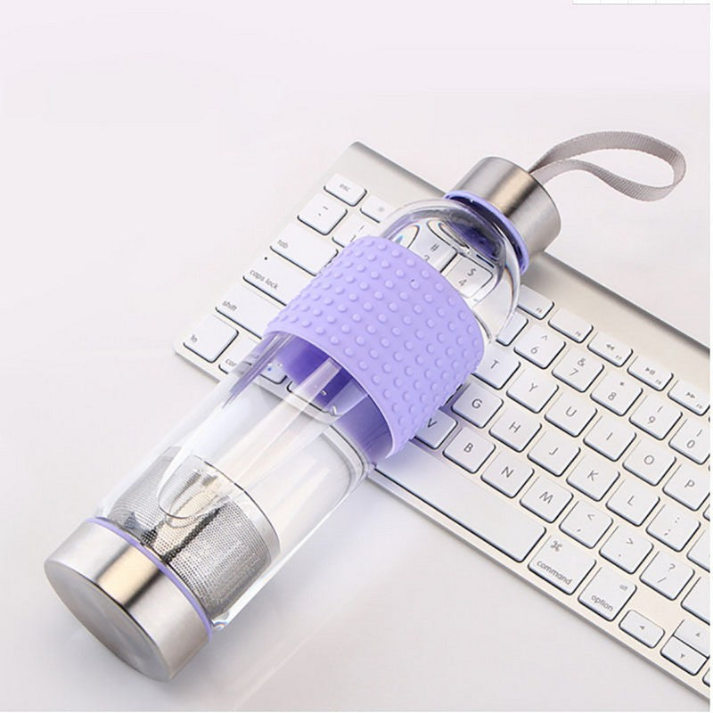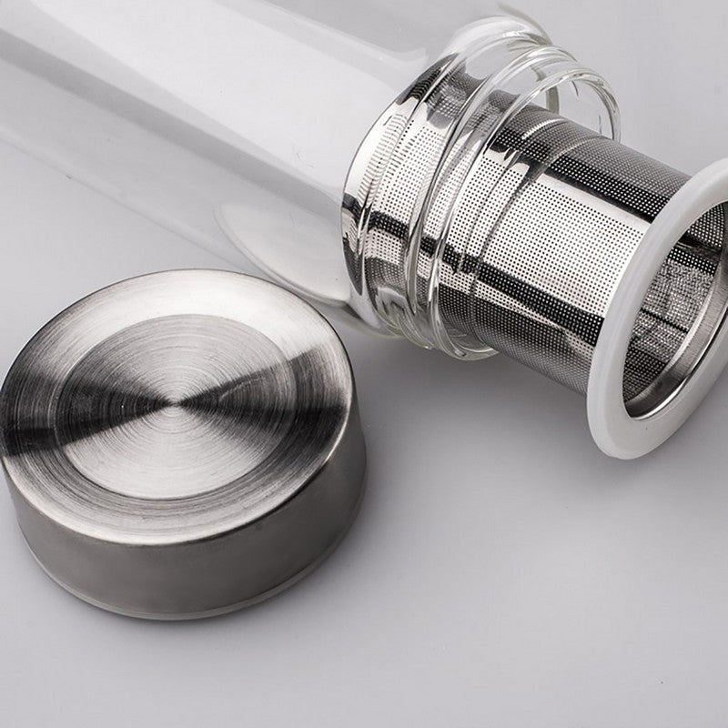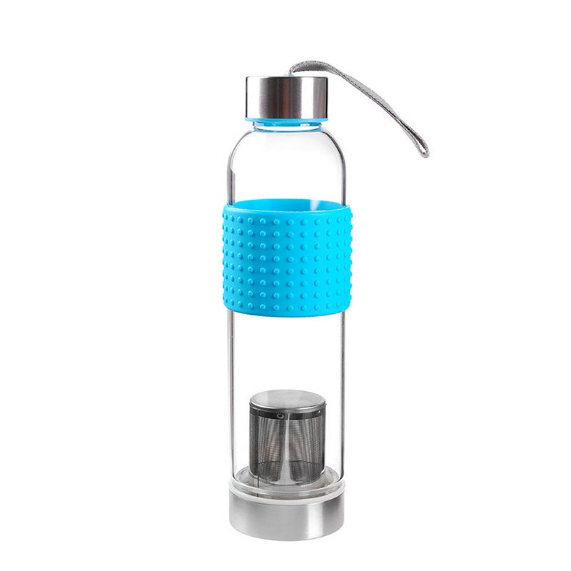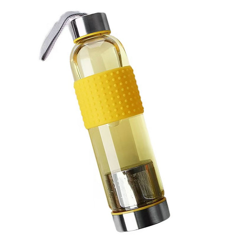 Upgrade your drink with our premium borosilicate glass infuser bottle. It contains a stainless steel infuser, silicone grip, and leak-proof lid for convenience. Perfect for cold beverages, with a removable bottom for easy filter access and an adjustable hand strap for on-the-go use. FDA-approved, but not dishwasher safe. Elevate your drinking experience today! 2.6′ L