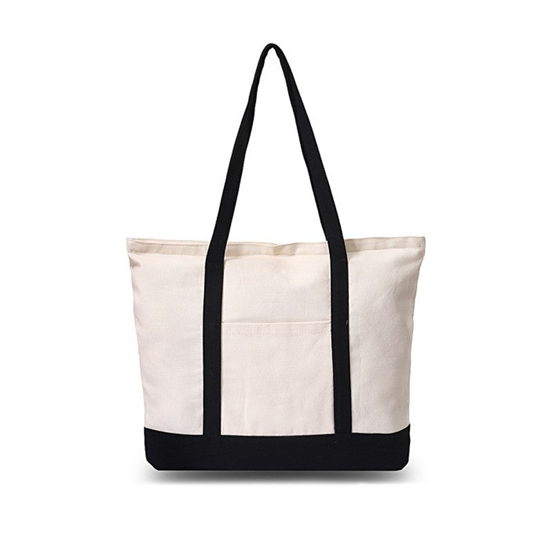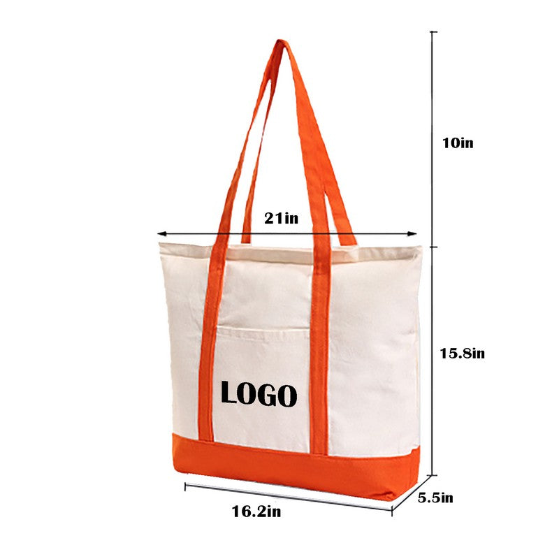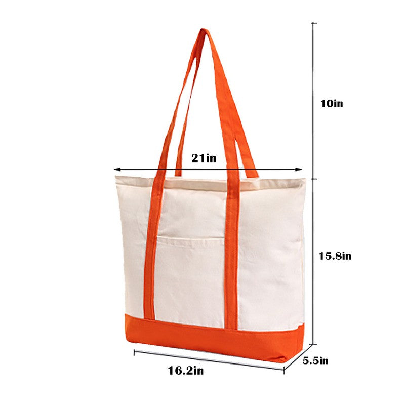 Experience luxury with our spacious zippered tote made from premium cotton canvas. This tote contains an exterior pocket, sturdy handles, and is perfect for shopping, picnics, errands, camping, and more. Versatile and eco-friendly, it is the perfect accessory for any occasion. Elevate your style and support sustainability with this elegant and reusable tote. 16.2′ L x 5.53′ W x 15.8′ H