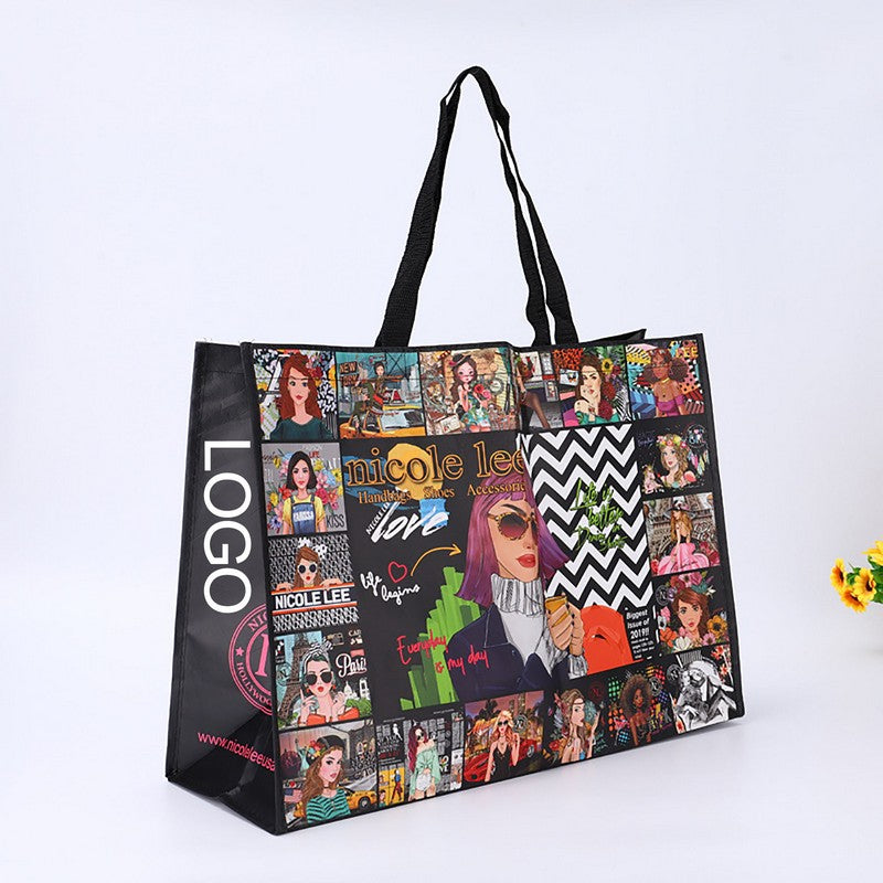 Promote your brand with our durable laminated tote bag! Made of water-resistant material, this bag is perfect for shopping trips. Customize with your logo for maximum brand exposure at your next event. 17′ L x 17′ W x 8 1/2′ H