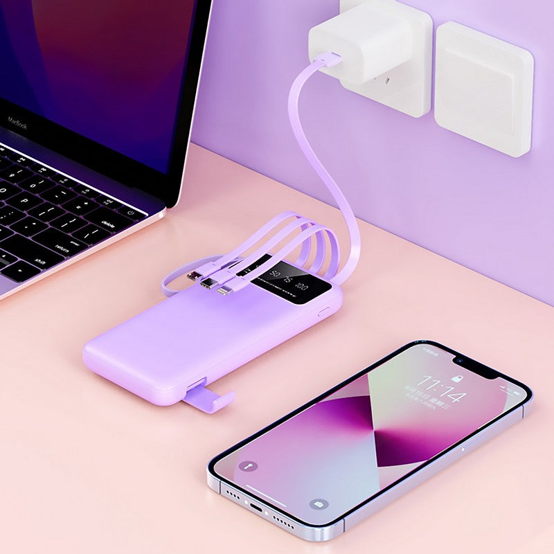 High Capacity Portable Power Bank with Built in Cables