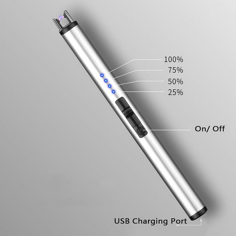 1; TRIPLE SAFETY DESIGN – New bonnet offers triple protection with lock switch and ignition switch. Spark stops after 7 seconds for safety, with restart switch.2; PORTABLE – Windproof design ensures electric pulse stays lit in strong winds. Lightweight for camping, BBQs, hiking.3; BATTERY NOTIFICATION – SUPRUS arc lighter displays real-time battery volume with all 4 LED lights when fully charged. 6.88′ L x 0.6′ W