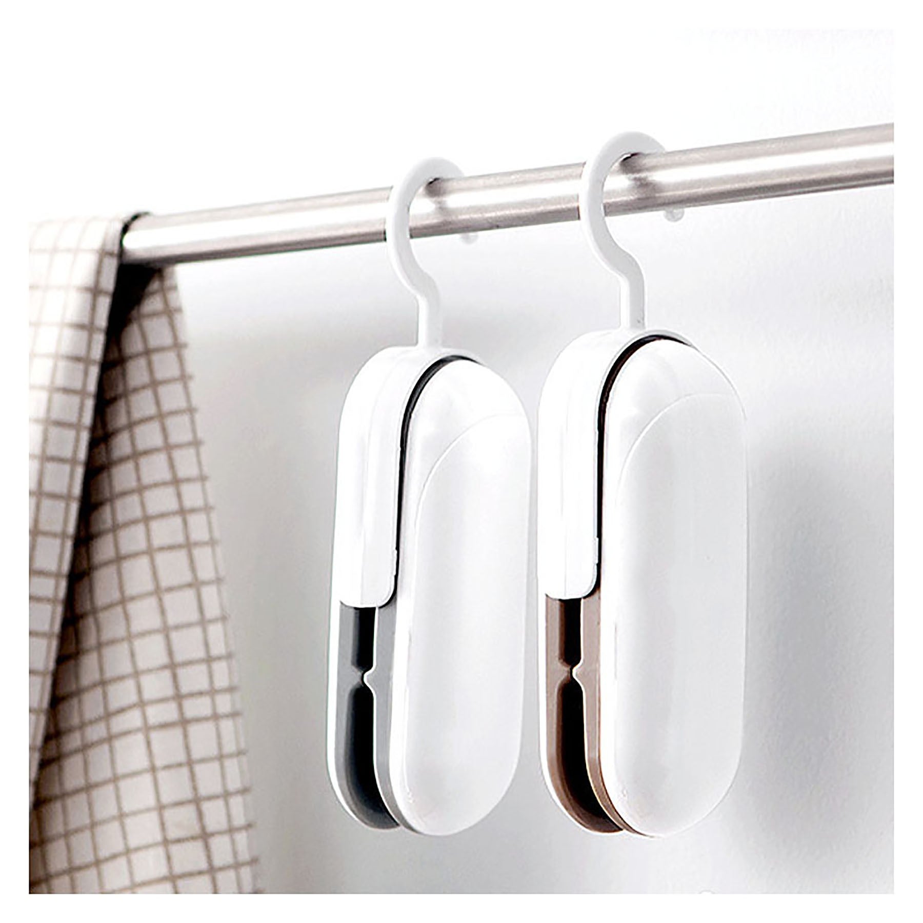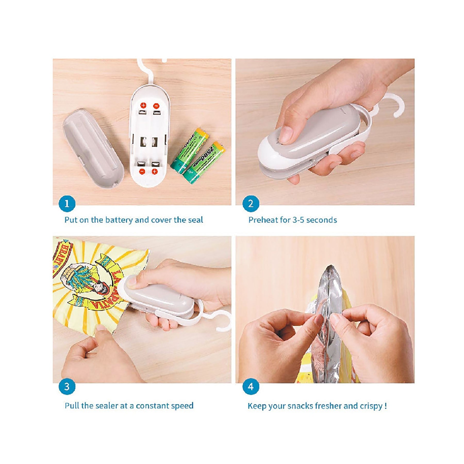 The mini bag sealer is made from ABS material,can resistant to high and low temperatures that make it live longer.With it,you can re-use the original bag, keep foods and snacks fresher,longer and reduce food waste.It is a necessary for whom like snacks,keep your family healthy!Quickly seals and cuts.It only needs to install the battery when first use.Remove the hook.The”+” side is a heat sealer,press down and preheat for 3-5 seconds before using,then simply slide it along the bag.The -” side is a cutter,which can cut the plastic bags.After using,attach the hook and it will power off automatically.This mini portable plastic sealer is more compact and easy to carry.Whether you go camping,or the kitchen and living room at home,you can use it to cut and seal easily and conveniently. 1.57″ L x 1.38″ W x 5.67″ H
