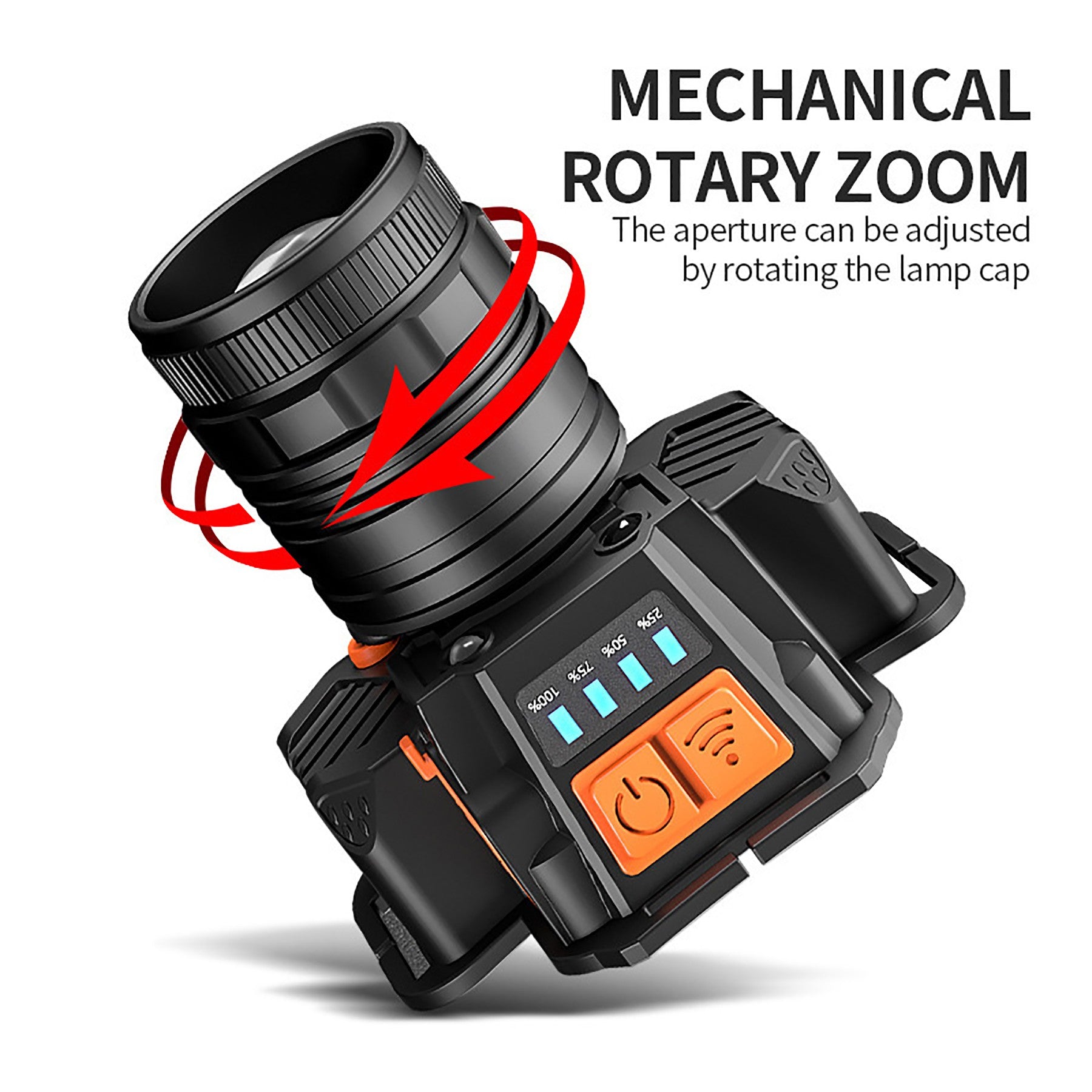 This headlamp is designed for intuitive operation, featuring a consistent shutoff method where holding the mode button for 3 seconds turns the light off from any setting. It incorporates a motion sensor mode for touchless control. The durable, sealed construction ensures water resistance, supporting reliable performance across diverse weather conditions. Equipped with 8 functional modes aamong them an emergency spotlight and motion-activated operation athis versatile LED headlamp adapts to a broad spectrum of lighting requirements. 2.48′ L x 1.77′ W x 1.77′ H