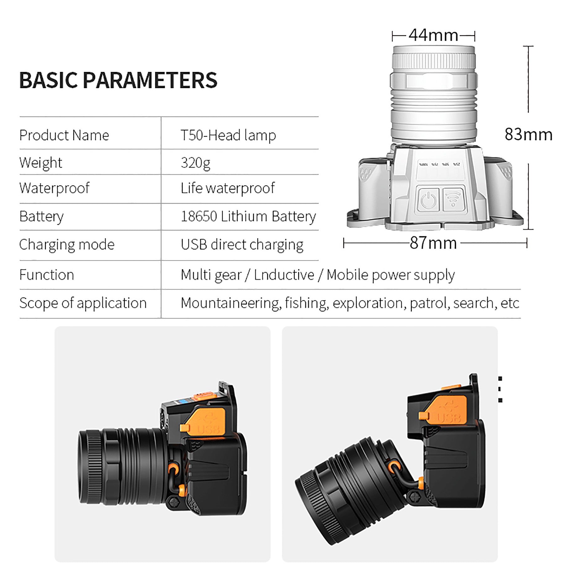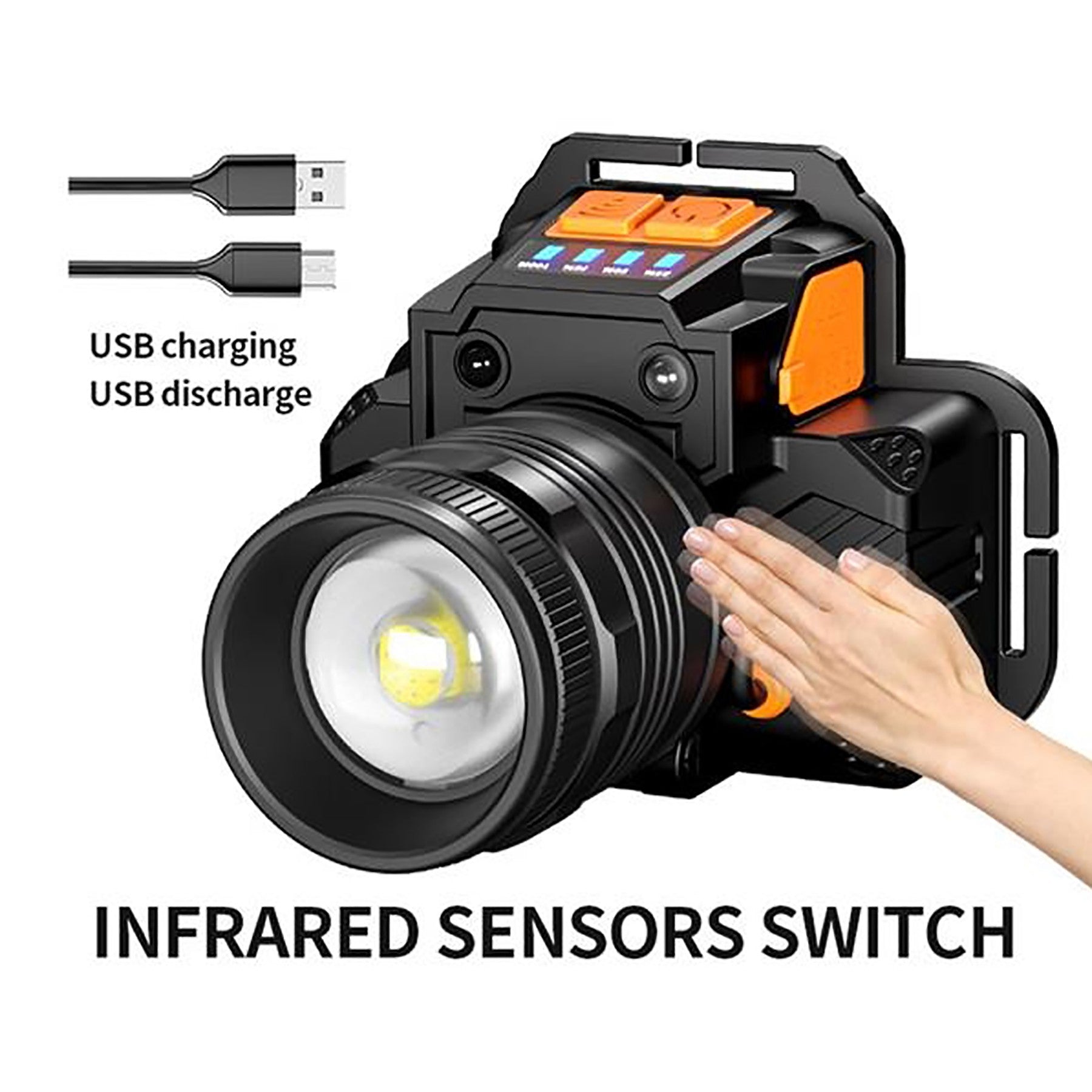 Introducing a rechargeable headlamp shaped like a camera with high-quality LED chips offering 6000 lumens of brightness – 20x brighter than incandescent lamps. Ideal for outdoor activities, it features a motion sensor mode for easy on/off, and can rotate 90 degrees for different lighting options. Versatile and powerful, this headlamp is essential for any adventure. 3.5″ L x 3.3″ W