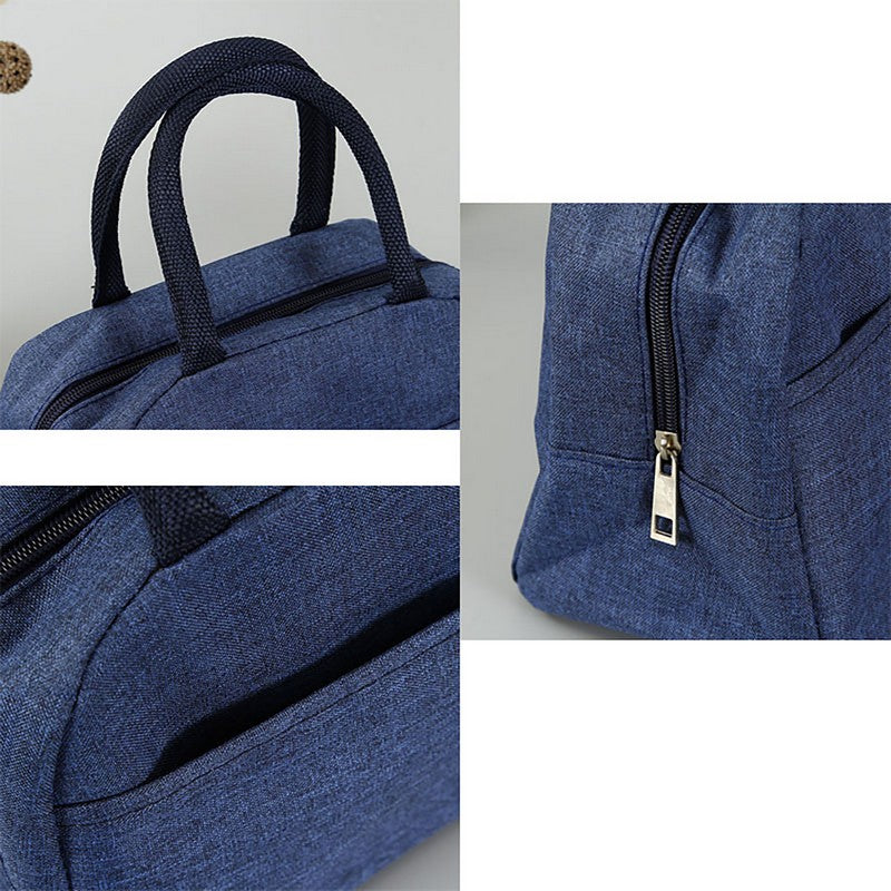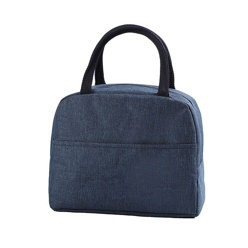 This insulated lunch tote is made of high quality polyester material with aluminum foil interior inside, perfect to keep your food fresh and warm. Features with dual soft handle allows you carry comfortable and convenience. A front pocket for putting napkins, keys, small change, cards and other small stuffs. Available in a variety of in stock colors. It is a great giveaway item for work meal, picnic meal, outdoor BBQ, diet management or medicine storage. 9′ L x 5 1/2′ W x 7 7/8′ H