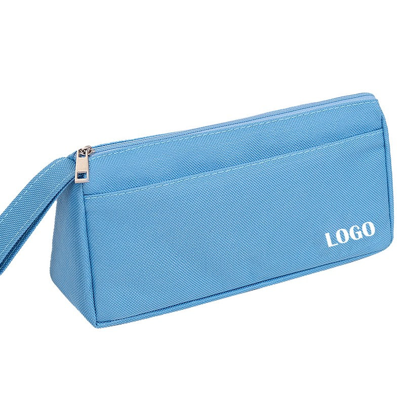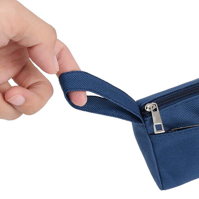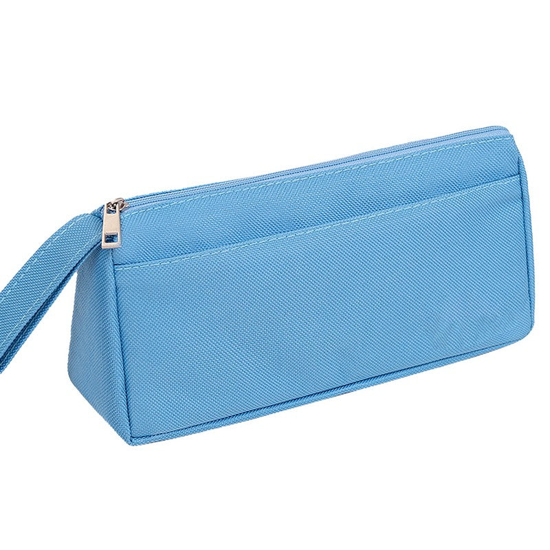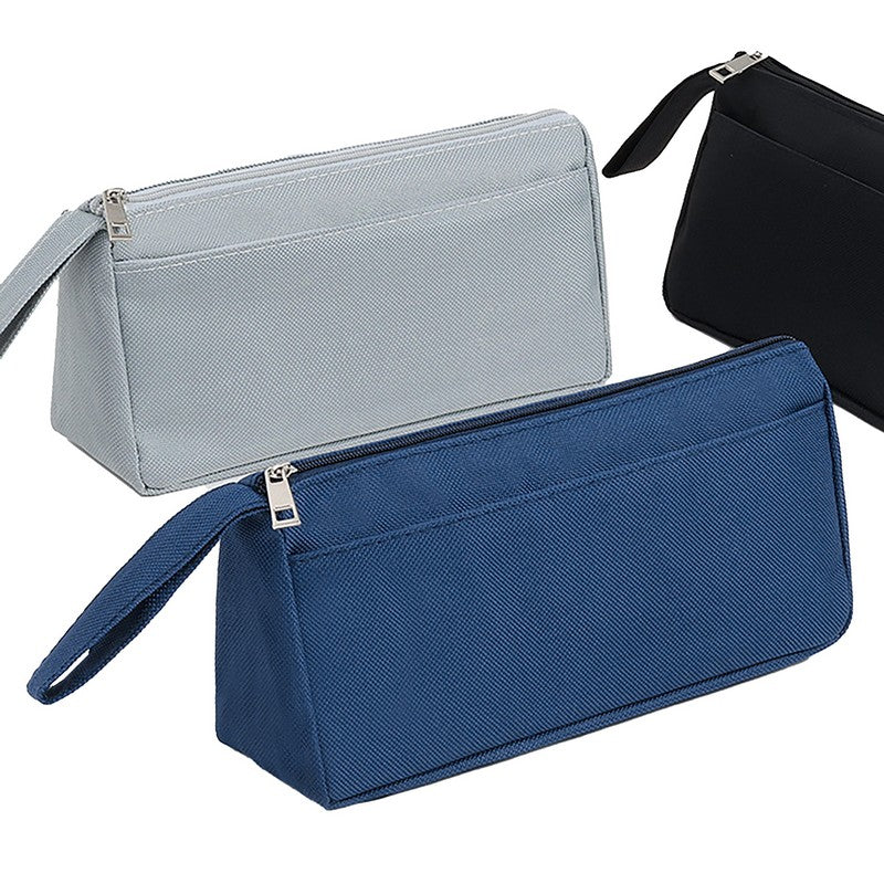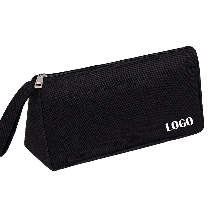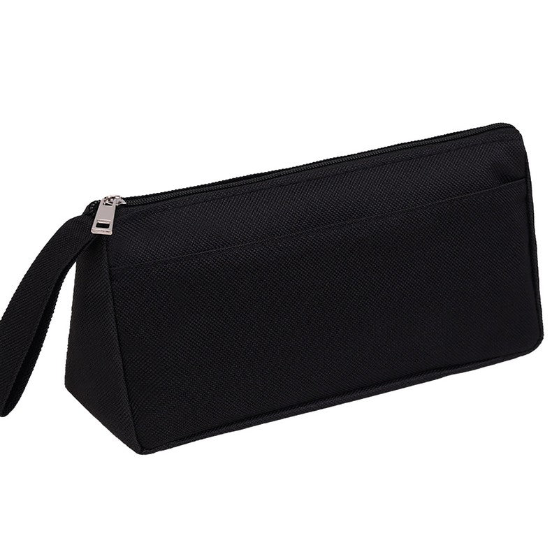 Introducing a premium oxford fabric triangular pouch for storing writing essentials. It can hold pens, pencils, highlighters, markers, and more. The wide opening allows easy access, while the sturdy material protects against dust, scratches, and wear. Elevate your organization with this chic and functional pouch for tidiness and safety of desktop supplies. 7.9′ L x 2.37′ W x 3.95′ H