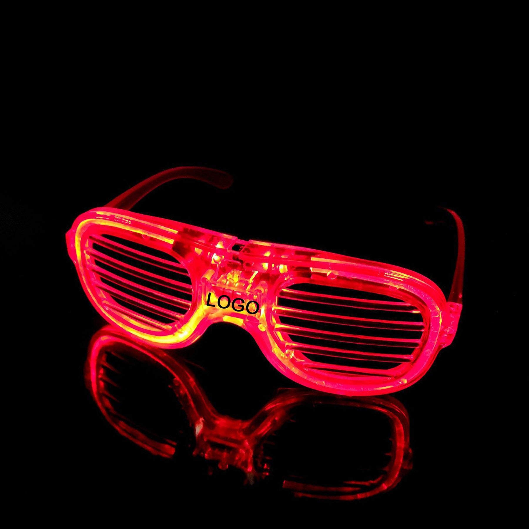 These LED glasses are made of plastic materials. The item on this page owns six LED lights, and we also have three LED lights item. They have various flashing modes.These LED light-up glasses can be set for 3 different modes: slow, fast blink, or constantly on. Great for concerts, weddings, clubs, Sweet 16’s and birthday parties, these light up slotted glasses will be a hit on the dance floor. It can make your party more atmosphere.Add your custom imprint and light up your next promotional event! Custom logo is available. 6 1/8″ L x 2 1/8″ W